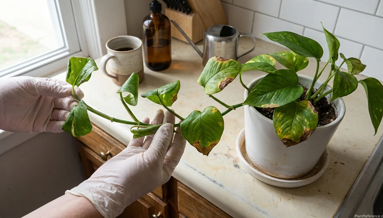 Brown spots and crispy tips on pothos leaves signal overwatering, underwatering, or water quality issues—here's how to diagnose and fix each cause.