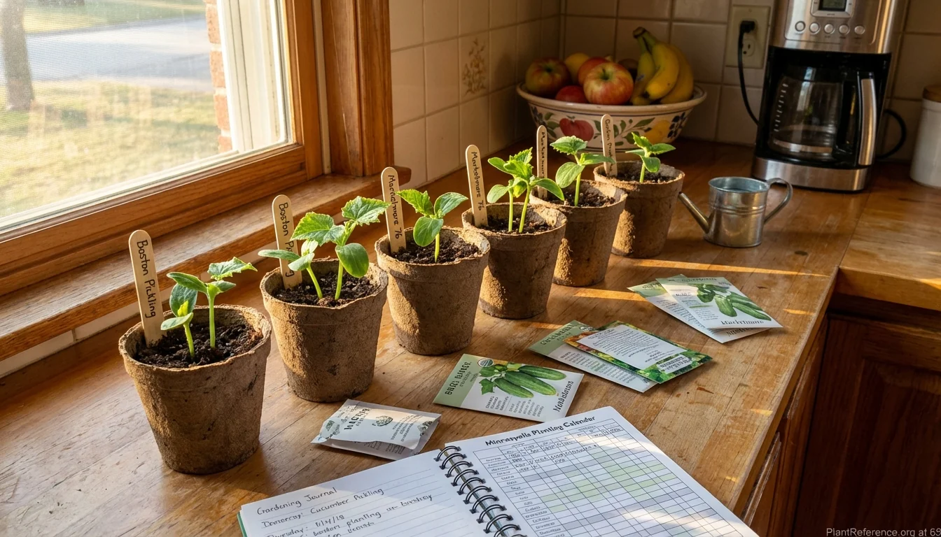 Biodegradable peat pots eliminate transplant shock for cucumber seedlings with sensitive root systems. Three-inch diameter accommodates 3-4 weeks of indoor growth without becoming root-bound. Pots plant directly in ground where they decompose naturally, allowing roots to grow through walls. Made from Canadian sphagnum peat moss and recycled paper. Essential for Minneapolis Zone 4a cucumber success where transplants are mandatory for reliable harvests.