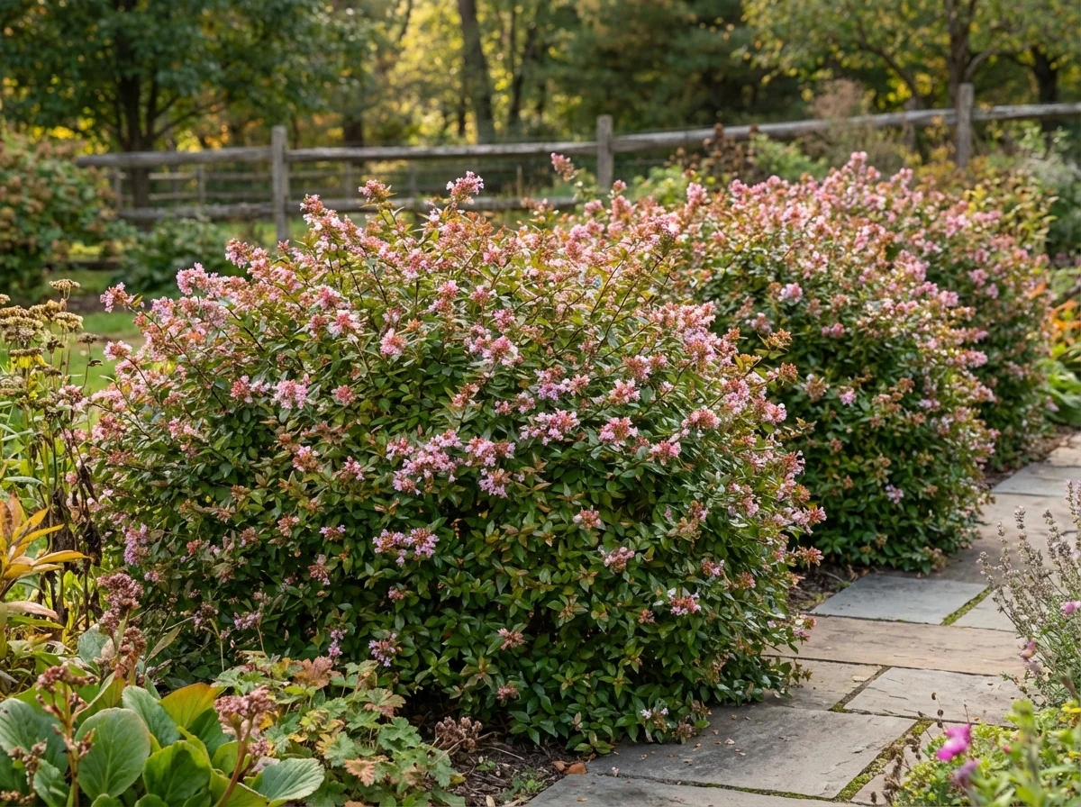 Water weekly during the first growing season to establish roots; 1 inch (2.5 cm) per week is sufficient in the absence of rain. Established plants tolerate 2–3 weeks without irrigation but produce fewer flowers during prolonged dry spells. Apply 2–3 inches (5–7.5 cm) of organic mulch around the base, keeping it 2–3 inches (5–7.5 cm) away from stems to prevent crown rot. Fertilize once in early spring with a balanced slow-release formula; excessive nitrogen produces vigorous foliage at the expense of flowers. Scale insects and aphids may appear in summer; both are manageable with horticultural oil applied when dormant or insecticidal soap during the growing season. The plant suckers from the base; remove unwanted suckers at ground level in spring.Pruning