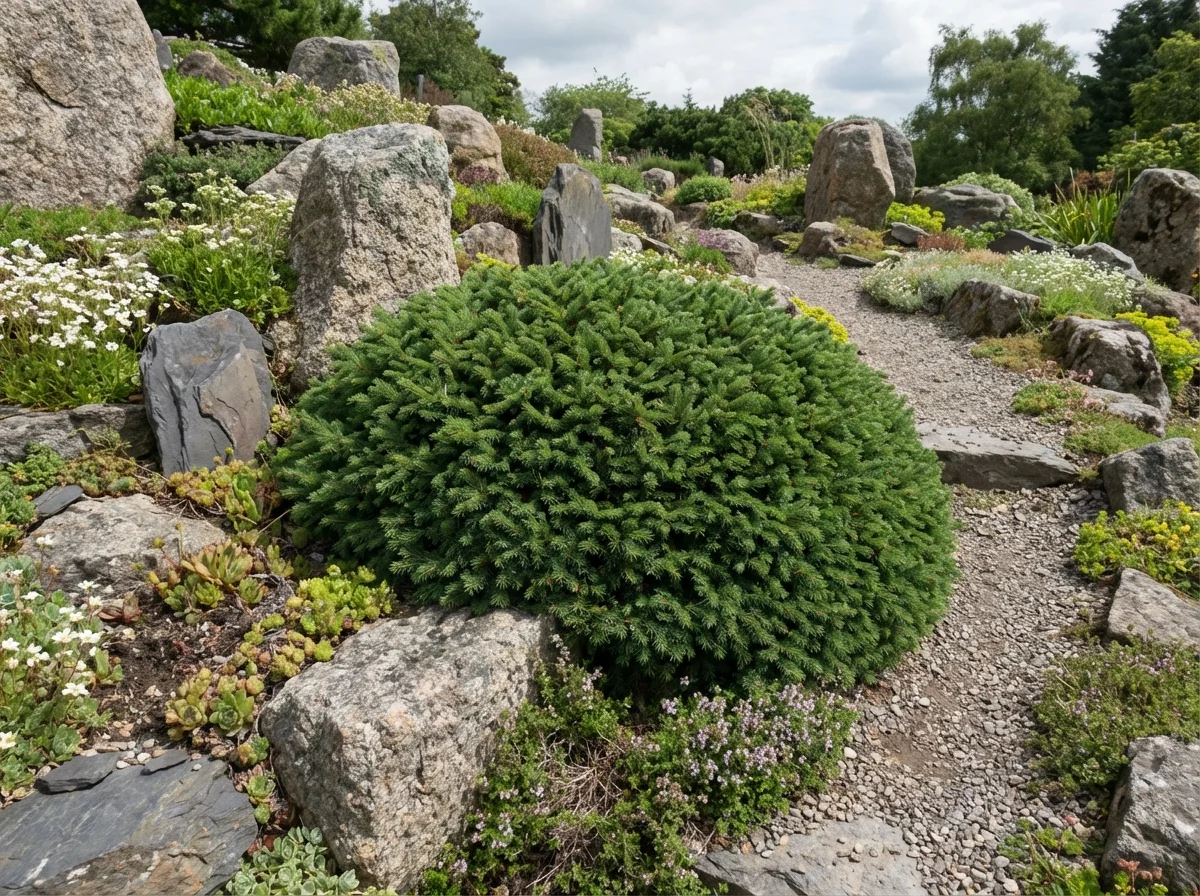 No pruning required for natural form — the dense cushion habit is self-maintaining. Remove any dead or damaged shoots in early spring. If an occasional vigorous upright shoot disrupts the mounded form, it can be removed at its base. Firs do not regenerate from bare old wood — avoid cutting into leafless stems.Pruning Schedule