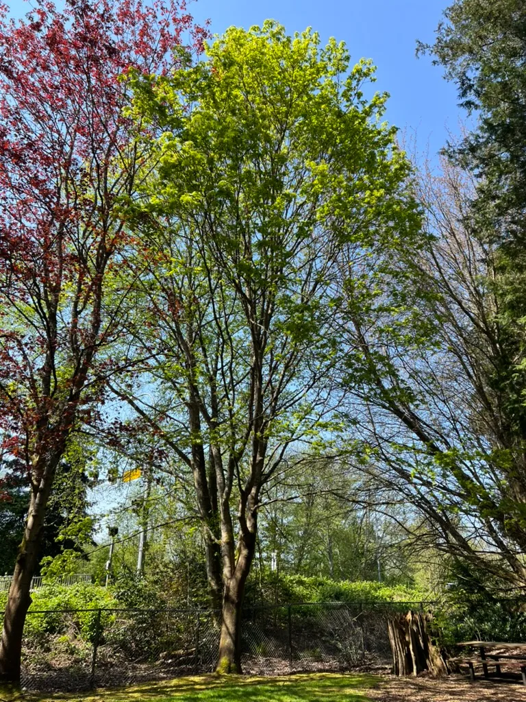 Planted as a large shade tree in parks, roadsides, and large commercial landscapes where space accommodates its mature spread and surface roots. Its use near natural areas, forest edges, riparian corridors, and wildlands is discouraged across the Pacific Northwest and regulated in several US states due to its invasive potential. Consult local invasive species guidelines before planting.How to Identify