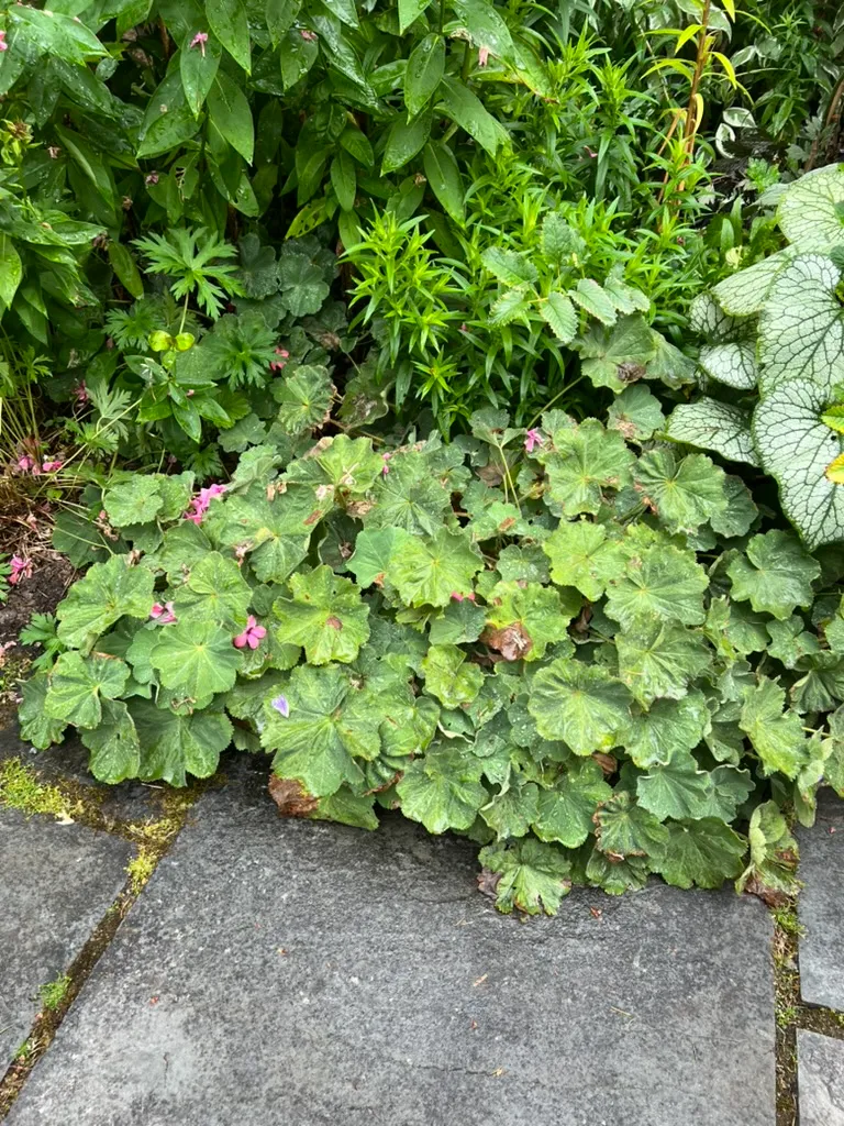 Plant in partial shade to full sun in cool climates; afternoon shade is needed in zones 7–9 to prevent leaf scorch. Water regularly during establishment; established plants are moderately drought-tolerant but foliage quality declines in prolonged dry periods. Cut plants back to 2–3 inches (5–8 cm) in midsummer if foliage becomes ragged from heat or after bloom; new foliage will regenerate within 2–3 weeks. Self-seeding is prolific — deadhead promptly after bloom if seedling spread is not desired. Divide clumps every 3–5 years in spring to maintain vigor; outer divisions establish readily.Pruning