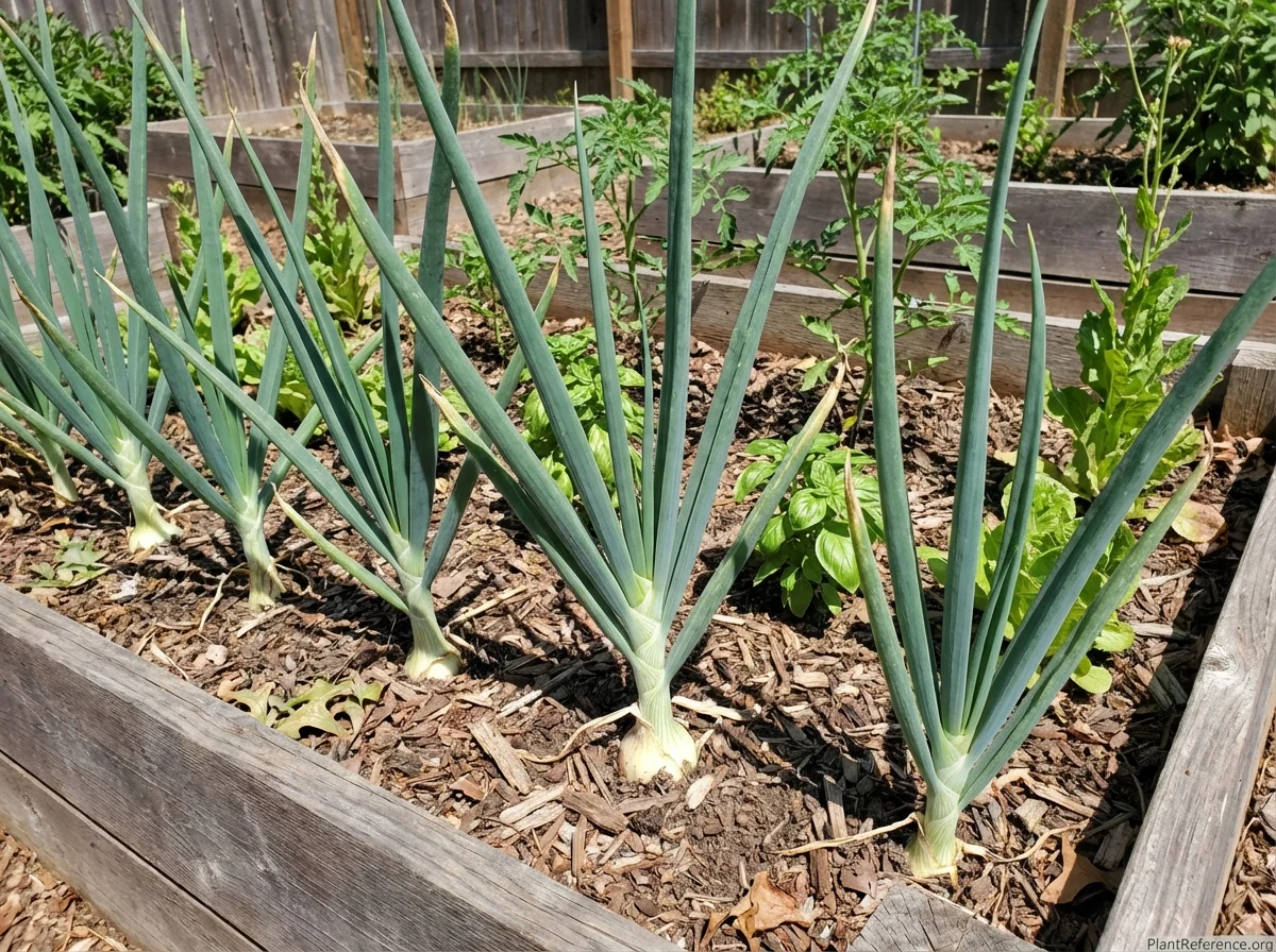 Allium cepa 'Texas Super Sweet' requires consistent moisture throughout the growing season, with deep watering once or twice weekly rather than frequent shallow watering. Apply a balanced fertilizer at planting and side-dress with nitrogen when bulbs begin to swell. Keep the area weed-free as onions compete poorly with weeds due to their shallow root system. As bulbs mature, gradually reduce watering to prevent rot and allow proper curing.Pruning