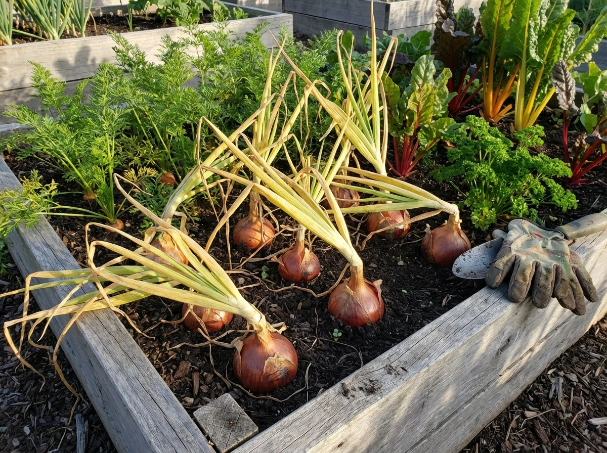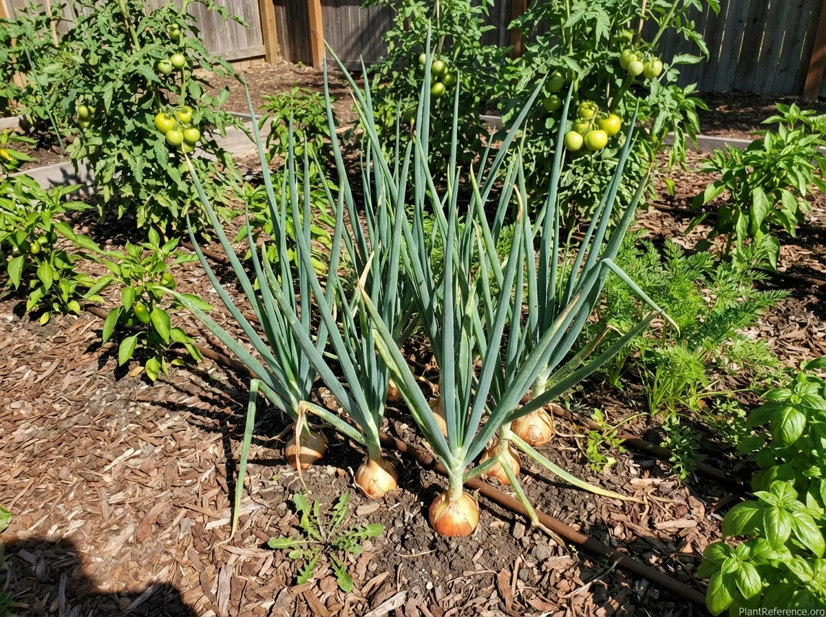 Allium cepa 'Australian Brown' requires minimal pruning during active growth, with the primary focus being the removal of flower stalks if they appear. Avoid cutting or damaging the green foliage throughout the growing season, as these leaves are essential for photosynthesis and bulb development. If flower scapes emerge, remove them promptly by cutting at the base to redirect energy into bulb formation rather than seed production. At harvest time, allow the tops to die back naturally, then cut them to approximately 1 inch above the bulb after they have completely dried. For traditional storage methods, leave longer stems that can be braided together, ensuring all foliage is thoroughly dried to prevent moisture retention that could lead to rot.Maintenance Level