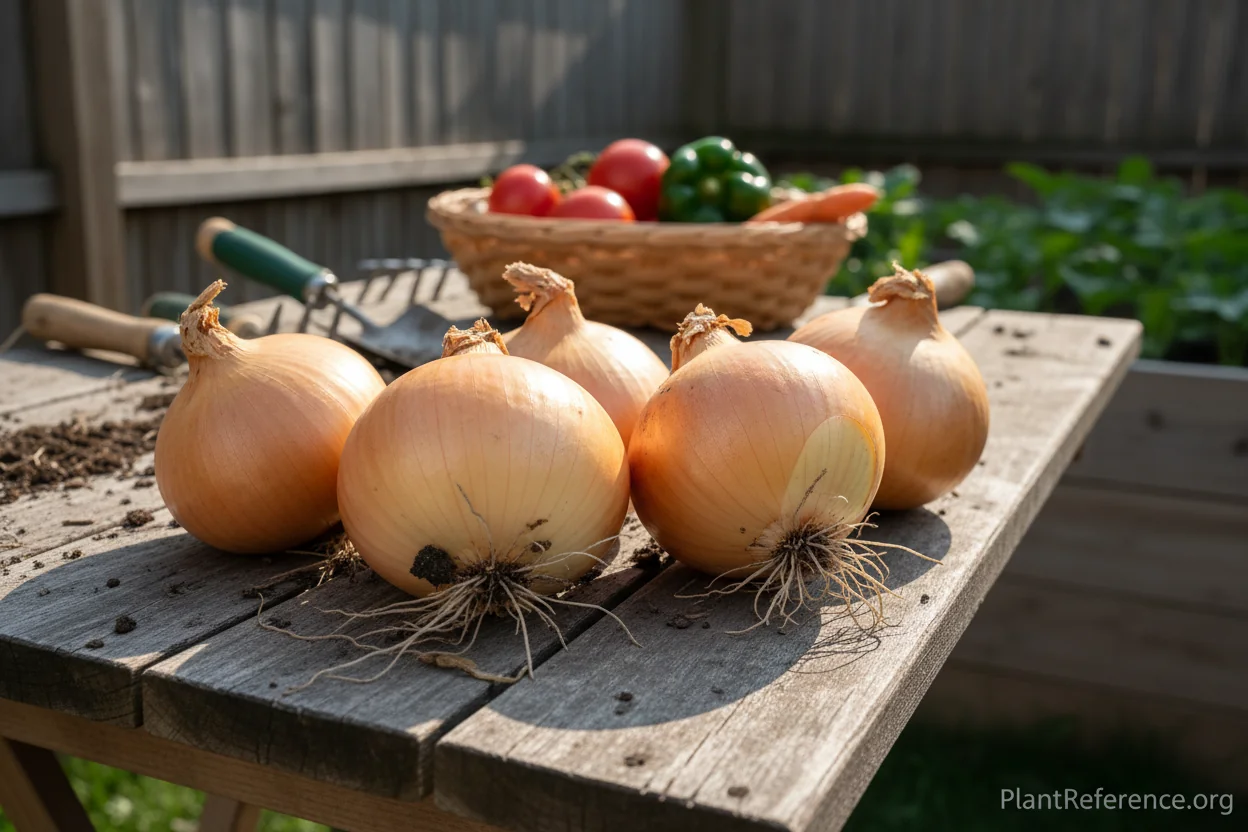 Allium cepa 'Candy' thrives in full sun exposure and demands well-draining, fertile soil for optimal bulb development and size. Plant in loose, organic-rich soil amended with compost to ensure proper drainage and prevent bulb rot, which can be devastating to the crop. Maintain consistent moisture throughout the active growing season, providing approximately 1 inch of water weekly through irrigation or rainfall. As bulbs approach maturity and the foliage begins to yellow naturally, gradually reduce watering to allow proper curing. Apply a side-dressing of compost or balanced fertilizer during mid-season to support continued bulb enlargement. Maintain excellent weed control throughout the growing period, as onions are poor competitors and weeds can significantly reduce yields.Pruning