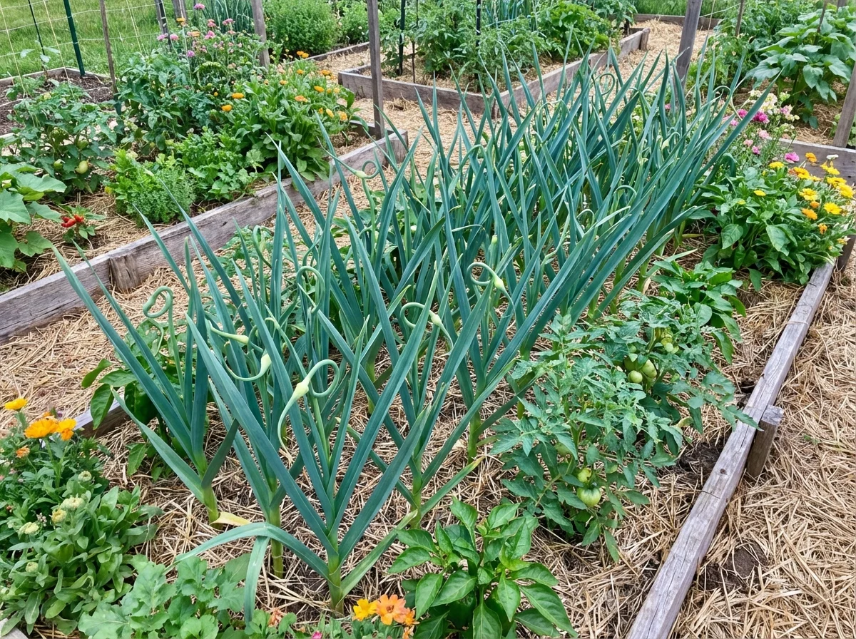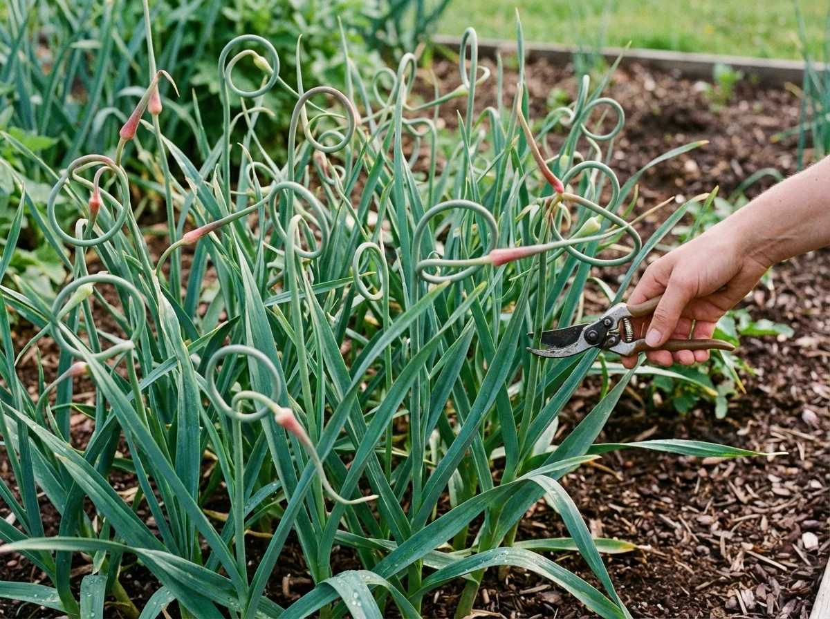 Allium sativum 'Music' requires minimal pruning, with the primary task being the timely removal of flower scapes that emerge in early summer. Cut these characteristic curled flower stalks at their base where they emerge from the foliage cluster, using clean, sharp scissors or pruning shears to make a clean cut. This scape removal is absolutely critical for achieving maximum bulb size and quality, as it prevents the plant from diverting energy into flower and seed production. Remove scapes when they have completed their initial curl but before they straighten completely, typically when the loop is fully formed. The harvested scapes are culinary treasures, offering mild garlic flavor perfect for stir-fries, pestos, and seasonal dishes. Avoid cutting back any foliage until it naturally begins to yellow and die back from the bottom up, as the leaves continue photosynthesis throughout the season to feed the developing bulb. Allow several green leaves to remain when the lower leaves have browned, signaling optimal harvest timing.Pruning Schedule
