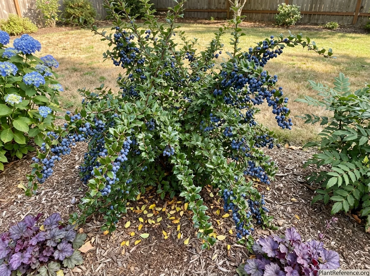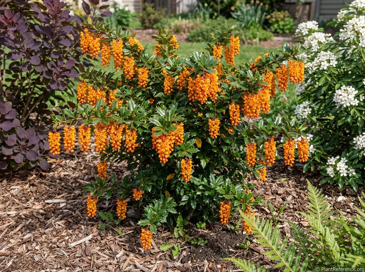 Berberis darwinii is an attractive evergreen shrub highly valued in Pacific Northwest gardens for its brilliant orange-yellow flowers, deep green glossy foliage, and blue-black berries. This architecturally interesting shrub provides year-round interest with its dense, spiny growth habit and seasonal displays of color. In the Pacific Northwest, it performs exceptionally well in coastal areas where it tolerates salt spray and serves as an excellent hedge, specimen plant, or wildlife habitat. Its thorny branches provide excellent natural security while its berries attract birds throughout the fall and winter seasons.