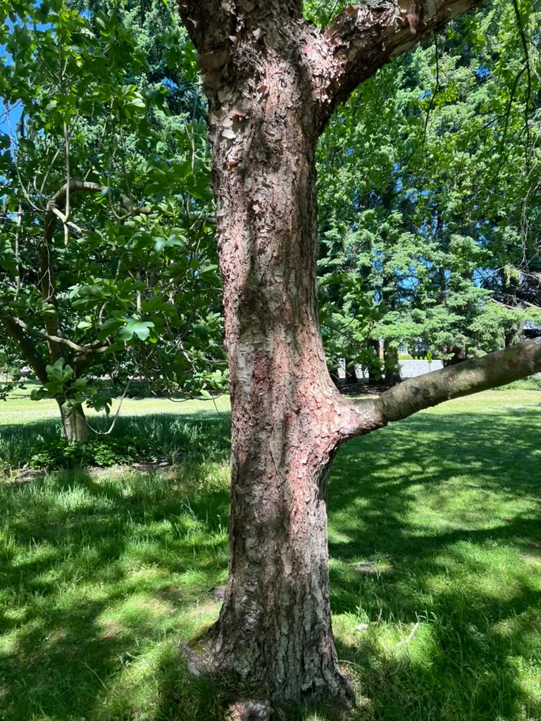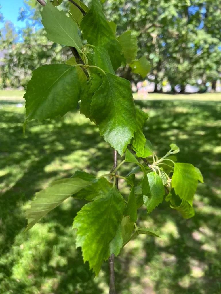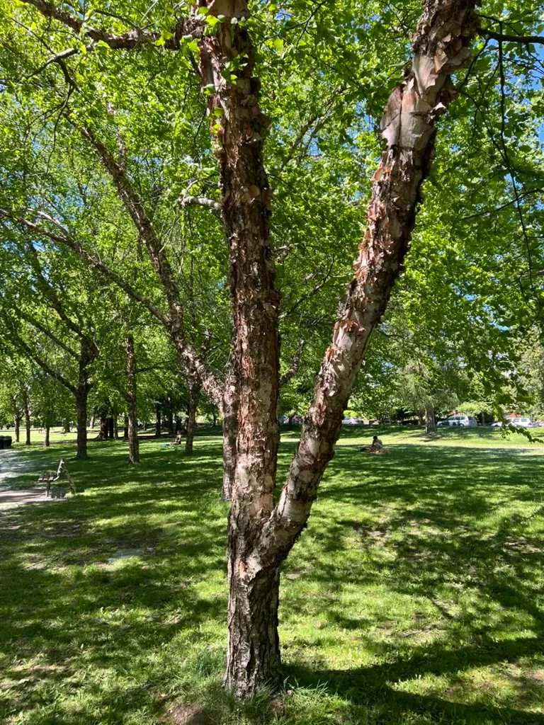 Planted as a specimen tree in residential landscapes, parks, and public spaces where the year-round bark display is the primary asset. The multi-stemmed habit is particularly effective as a winter feature. Tolerates wet sites, rain gardens, and stream-adjacent plantings. Strongly preferred over Betula pendula and B. papyrifera in Pacific Northwest landscapes due to bronze birch borer resistance. Allow 35–50 feet (10.5–15 m) of horizontal clearance. Not suited to alkaline soils or consistently dry upland sites without irrigation.How to Identify
