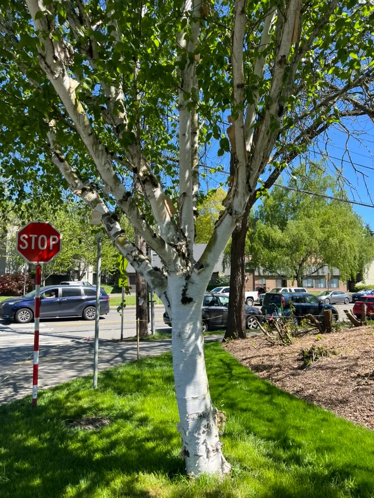 The premier choice for brilliant white bark in PNW gardens where Betula pendula is considered aesthetically desirable but longevity is a concern. Named cultivars ('Jermyns', 'Silver Shadow', 'Doorenbos') offer reliably superior bark whiteness. Highly effective planted in groves of 3 or more stems against dark evergreen backgrounds for maximum winter bark impact. Best suited to cool, moist PNW microclimates. Not recommended for hot, dry inland lowland sites without consistent irrigation and mulching. For guaranteed long-term white-bark performance in warm PNW lowlands, Betula nigra 'Cully' (Heritage®) is the more reliable choice.How to Identify