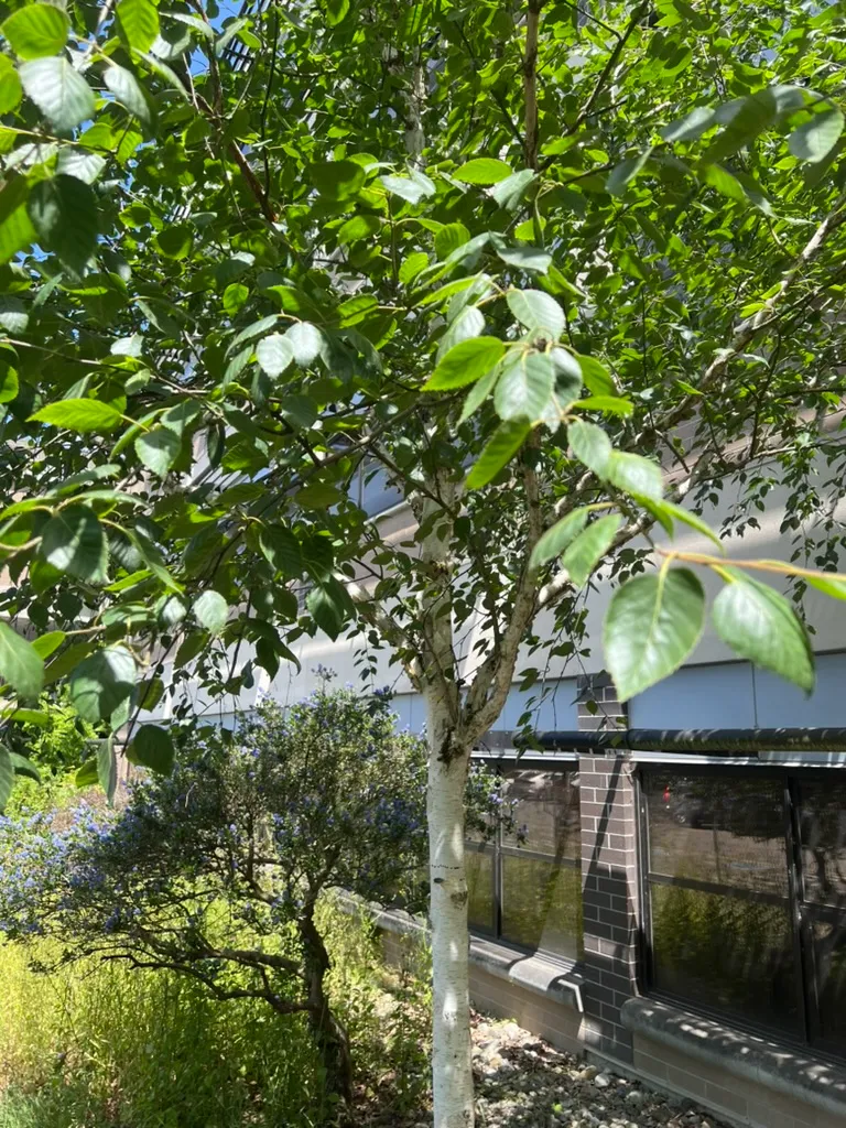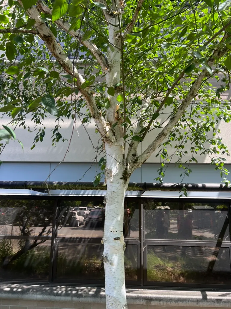 Prune in summer (June through August) or fall — avoid spring when sap bleeds freely from wounds. Remove dead, damaged, or crossing branches. Minimal corrective pruning is needed; the tree develops a strong natural upright form. Clean pruning cuts at the branch collar heal most effectively. Monitor annually for early signs of bronze birch borer in the upper canopy.Pruning Schedule