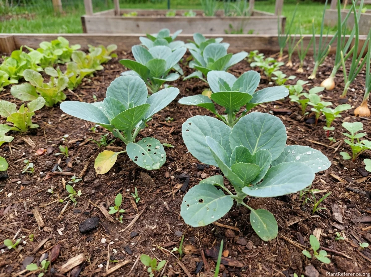 Brassica oleracea 'Early Jersey Wakefield' requires consistent moisture throughout the growing season, needing approximately 1-1.5 inches of water weekly. Maintain evenly moist but well-draining soil to prevent splitting of mature heads. Feed with a balanced fertilizer at planting and side-dress with nitrogen-rich fertilizer 3 weeks after transplanting. Mulch around plants to retain moisture and suppress weeds. Monitor for common brassica pests including cabbage worms, flea beetles, and aphids, using row covers early in the season for protection.Pruning