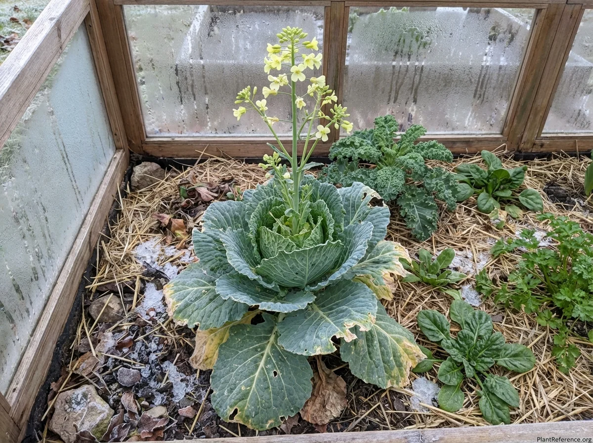 Brassica oleracea 'Waltham 29' requires consistent moisture and fertile, well-draining soil rich in organic matter. Water regularly, providing 1-1.5 inches per week, ensuring soil remains evenly moist but not waterlogged. Apply a balanced fertilizer at planting and side-dress with nitrogen-rich fertilizer 3 weeks after transplanting. Mulch around plants to retain moisture and suppress weeds. Monitor for common brassica pests including cabbage worms, aphids, and flea beetles. Row covers can provide protection from pests and extend the growing season. In hot weather, provide afternoon shade to prevent premature bolting.Pruning