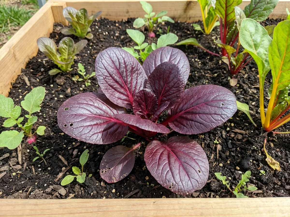 Brassica rapa (turnip group) originated in Central Asia and the Mediterranean. 'Scarlet Queen' is a Japanese hybrid.Suggested Uses