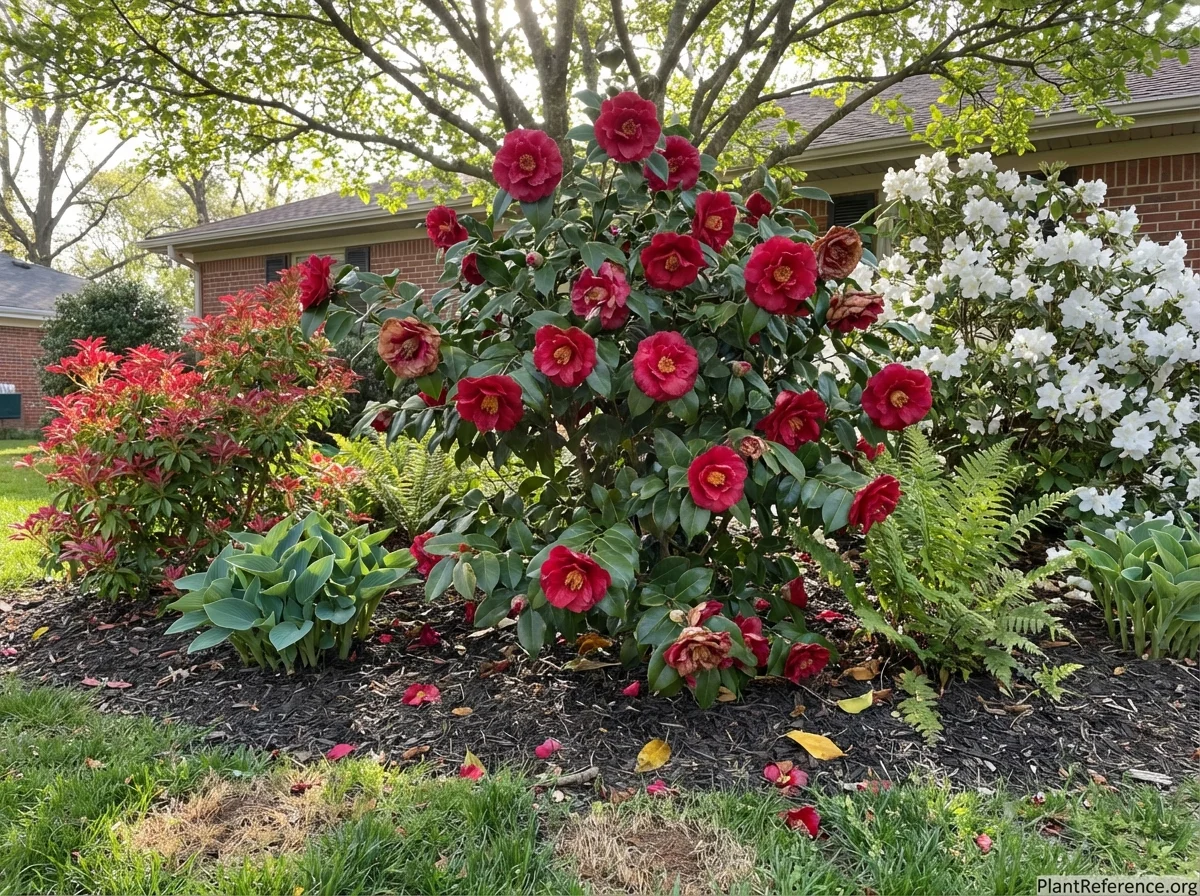 Camellia japonica is a magnificent broadleaf evergreen shrub that epitomizes the rich horticultural heritage of Pacific Northwest gardens, where it has been cultivated since the earliest European settlements in the region. This aristocratic plant brings exceptional ornamental value with its glossy, deep green foliage providing year-round structure and its exquisite, often formal blooms offering dramatic late winter to spring color when few other shrubs are flowering. Particularly well-suited to the acidic soils and moderate climate of western Oregon, Washington, and British Columbia, Japanese camellias have become signature plants in both historic and contemporary landscapes throughout the region. Their ability to thrive in the dappled shade beneath the region's massive conifers while tolerating the cool, wet winters makes them indispensable components of Pacific Northwest garden design, providing a perfect evergreen framework for woodland and shade gardens throughout the maritime Northwest.