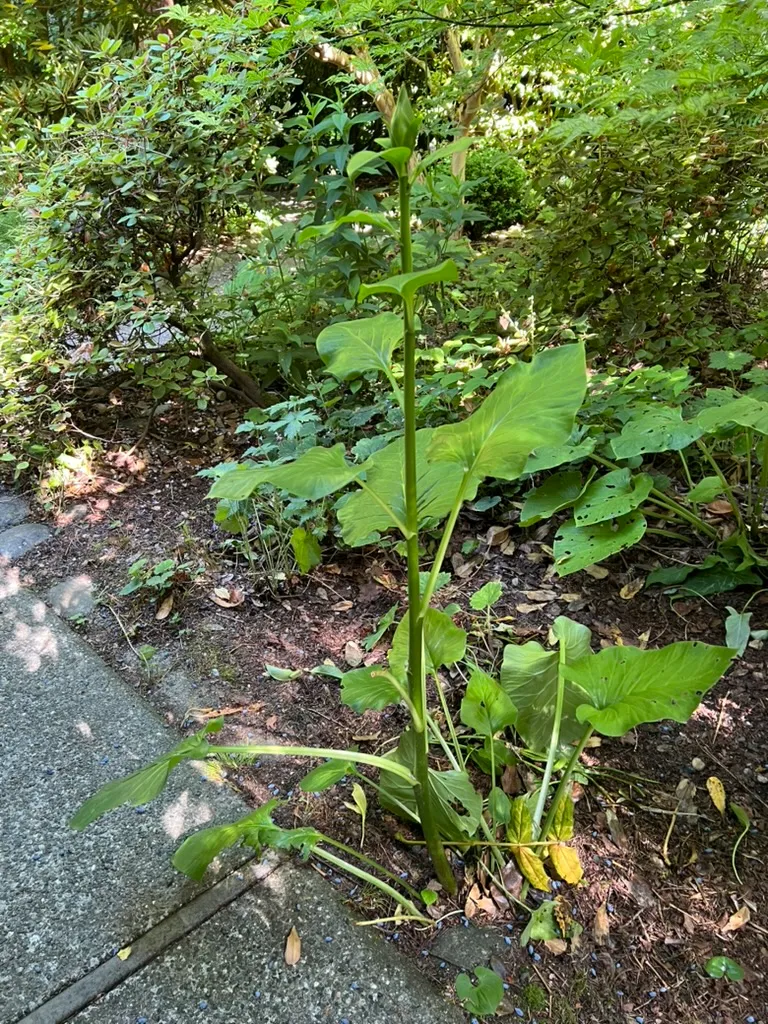 Plant bulbs in autumn with the tip at or just below soil level in deep, humus-rich, moist, well-drained soil in partial shade. Avoid full sun; strong sun bleaches and scorches the large leaves. Keep soil consistently moist through the growing season. Apply a deep mulch of 4-6 inches (10-15 cm) of composted leaf material to retain moisture and protect the bulb from hard freezes. After the main bulb flowers and dies, carefully excavate the base to locate offset bulbils; replant at 18-24 inch (45-60 cm) spacing. Provide a stake for flowering stems in exposed sites, as stems can blow over at full height.Pruning