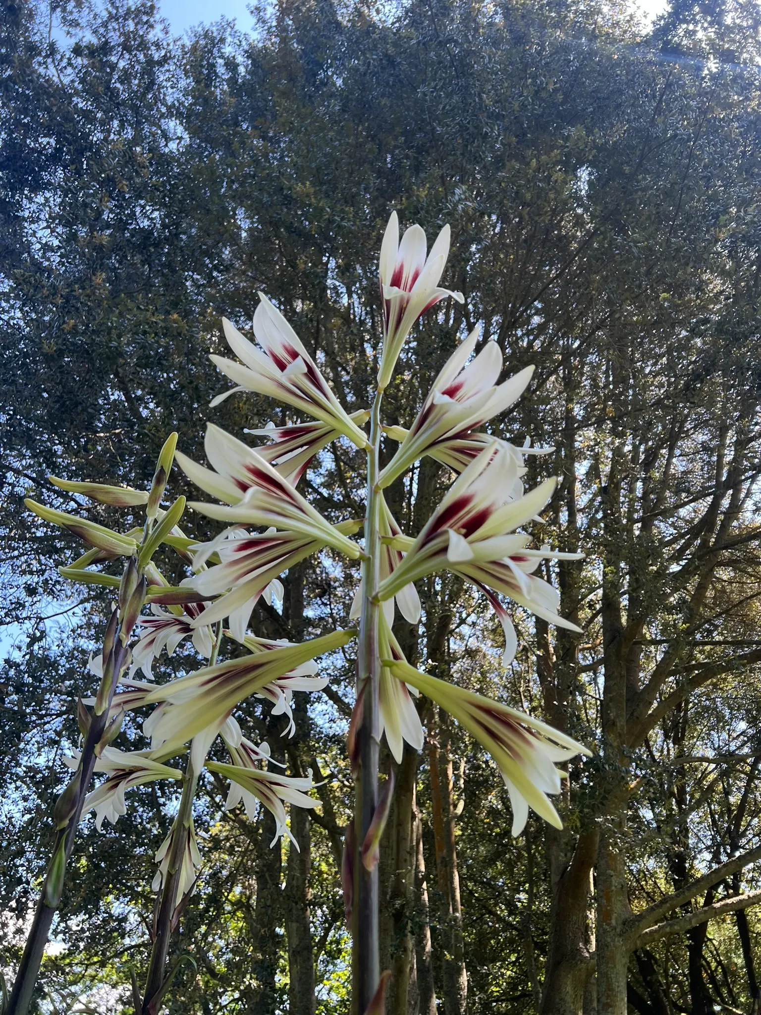 Allow the flowering stem and seed capsules to remain after bloom; the large brown seed capsules provide autumn interest and seeds can be collected when capsules crack. Cut the dead flowering stem to ground level in late autumn. Do not disturb offset bulbils during summer; allow them to establish undisturbed for one full growing season before moving.Pruning Schedule