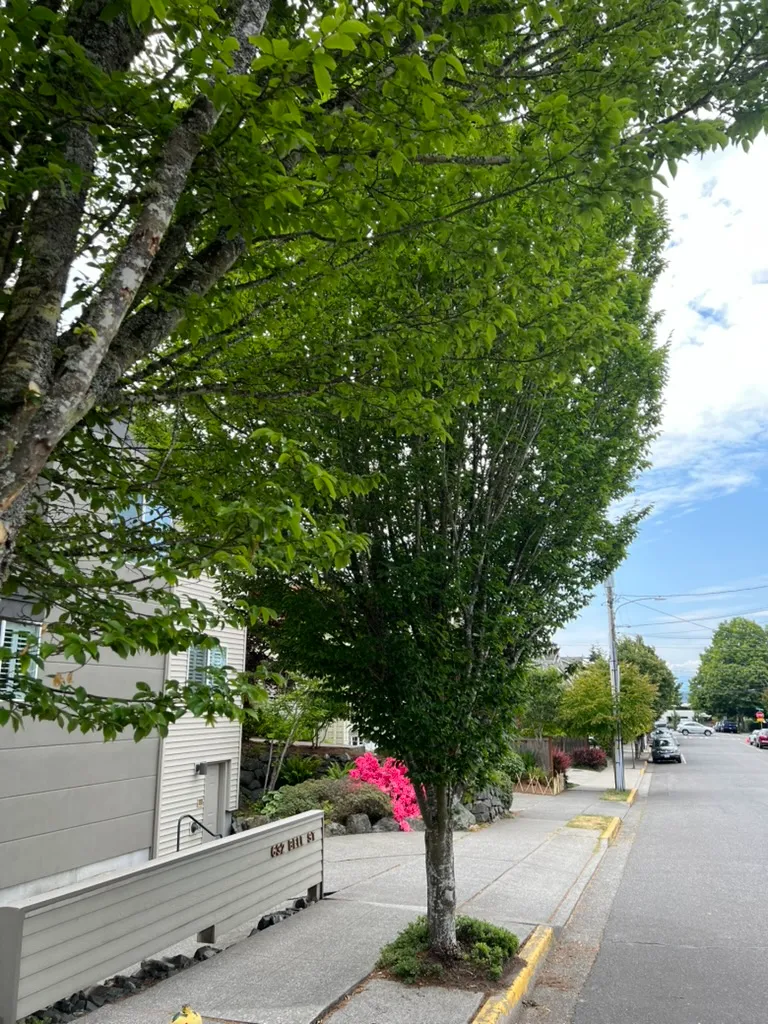 Excellent street tree, parking lot tree, and urban specimen for PNW cities and towns where soil compaction, alkaline pH, and reflected heat limit other tree choices. The narrow young form suits restricted street tree spaces; the broadening mature form provides substantial shade over decades. Effective as a formal hedge or pleached screen — C. betulus takes formal shearing exceptionally well. Great Plant Picks endorsed for Pacific Northwest gardens. A reliable, long-lived, low-maintenance tree with four-season interest: spring catkins, summer texture, fall color, and winter muscular bark.How to Identify