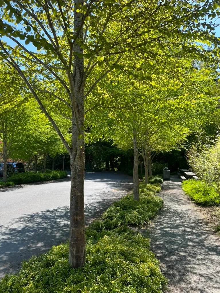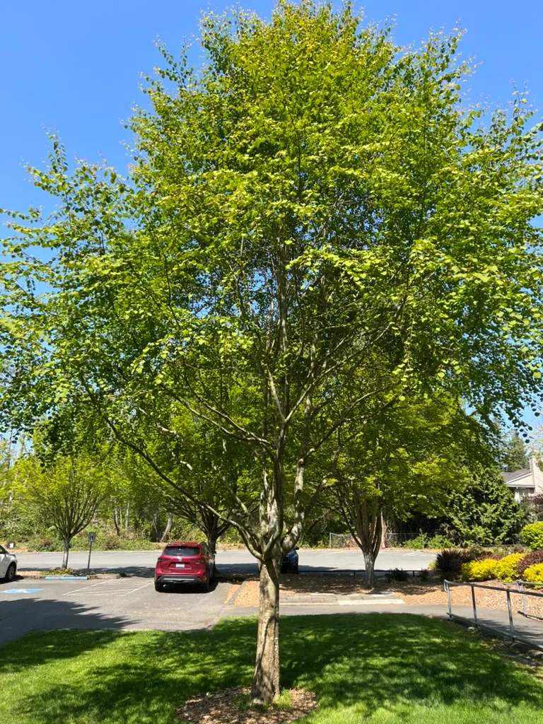 One of the most highly recommended ornamental trees for Pacific Northwest gardens — Great Plant Picks endorsed. Exceptional as a specimen in residential gardens, parks, and streetscapes where the multi-season display (spring pink leaf emergence, summer blue-green canopy, autumn caramel fragrance and color) can be fully appreciated. Particularly effective near seating areas, patios, and garden paths where the fall caramel fragrance can be enjoyed at close range. Suitable as a large street tree in wide planting strips with supplemental irrigation. Combines well with shade-tolerant underplantings. Allow 25–40 feet (7.5–12 m) of horizontal clearance for mature width.How to Identify