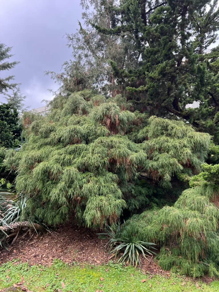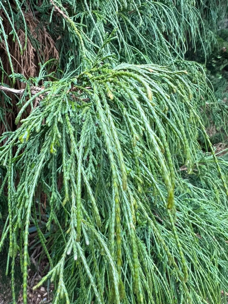 Chamaecyparis pisifera 'Filifera' is planted as a large specimen or accent conifer in Pacific Northwest gardens and parks where pendant thread foliage provides year-round textural contrast to flat-spray Cupressaceae. Suited to large garden and park settings given mature dimensions of 20–30 feet (6–9 m). Commonly used in mixed conifer collections alongside C. pisifera 'Filifera Aurea' for green/gold contrast.How to Identify