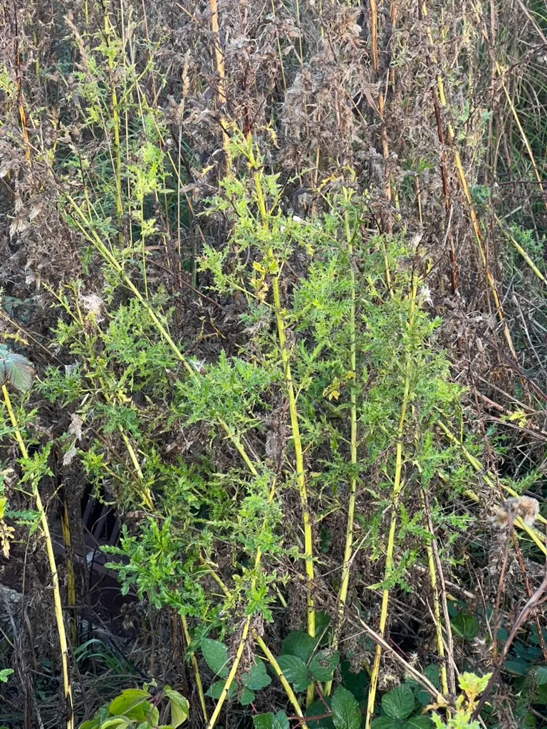 Cirsium arvense is a deep-rooted, colony-forming herbaceous perennial in the daisy family (Asteraceae) reaching 24–60 inches (60–150 cm) tall with a 24–48 inch (60–120 cm) spread per individual stem cluster, expanding indefinitely via lateral roots. Stems are erect, branching in the upper half, smooth to slightly hairy, and lack the spiny wings found on Carduus and some other thistle genera. Leaves are oblong to lance-shaped, 3–8 inches (8–20 cm) long, with irregularly lobed and spiny-toothed margins, dark green above, lighter and sometimes slightly hairy beneath. The species is dioecious — male and female flowers are borne on separate plants. Flower heads are small, 0.5–0.75 inch (12–18 mm) in diameter, numerous, borne in loose terminal clusters. Florets are pink to lavender with a light vanilla-like fragrance. Female heads produce seeds with a feathery (plumose) pappus for wind dispersal. A single female plant produces 1,000–5,000 seeds annually. The extensive lateral root system spreads 10–20 feet (3–6 m) per year at depths of 6–36 inches (15–90 cm), with adventitious shoots emerging every 4–12 inches (10–30 cm) along the roots. Root fragments as small as 0.25 inch (6 mm) regenerate. Listed as a noxious weed in 43 U.S. states and all Canadian provinces, and is classified as a federal noxious weed in the United States.