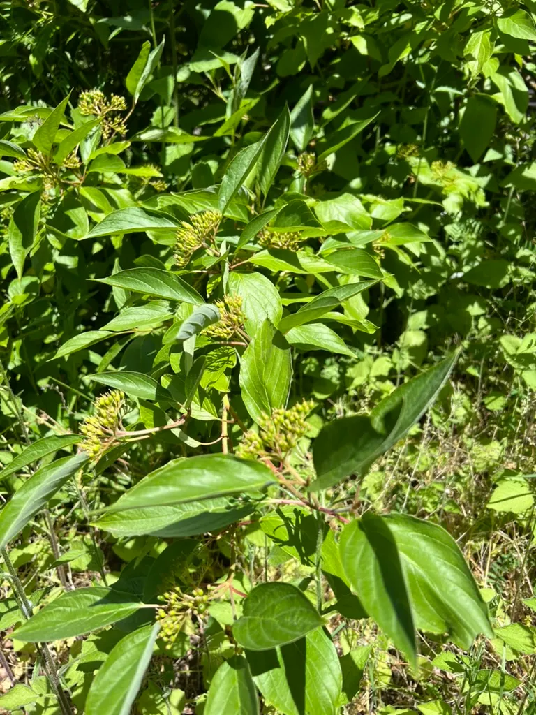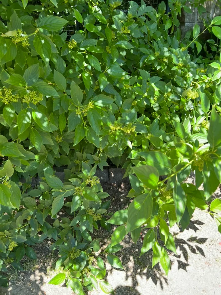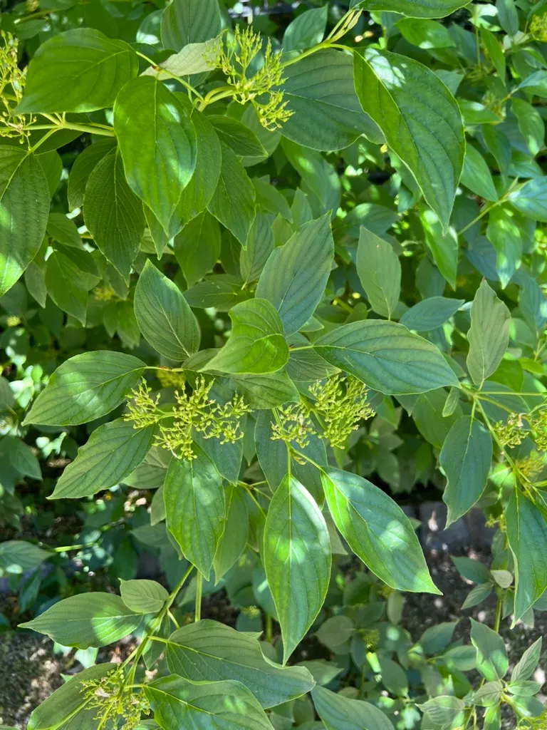 Cornus sericea 'Flaviramea' (yellow-twig dogwood) is a cultivar of the native red-osier dogwood grown for its brilliant chartreuse-yellow to golden-yellow winter stems — a striking counterpart to the vivid red stems of the species. It reaches 6–8 feet (1.8–2.4 m) tall and wide, slightly less vigorous than the species, forming a multi-stemmed, suckering shrub. The stem color is most saturated on young 1- and 2-year-old growth in winter: bright chartreuse to warm yellow-green, fading toward greener and duller on older wood. As with all stem-color dogwoods, annual hard coppicing in late winter (cutting all stems to 6–12 inches / 15–30 cm from the ground) is essential to maintain the display — without it, the shrub fills with older green-gray stems. In late May through June, flat-topped corymbs of small creamy-white flowers attract pollinators; white berries follow in late summer. Fall foliage tends to be a softer purple-yellow rather than the more vivid burgundy of the species in full sun. Culture is identical to Cornus sericea: excellent for wet, moist, or poorly drained sites. Most effective when planted adjacent to red-stemmed Cornus sericea or coral Cornus alba 'Elegantissima' for a contrasting winter stem combination. DB note: url_2 for this record incorrectly links to the GPP page for Cornus kousa (ID 410) — that link is not included here.