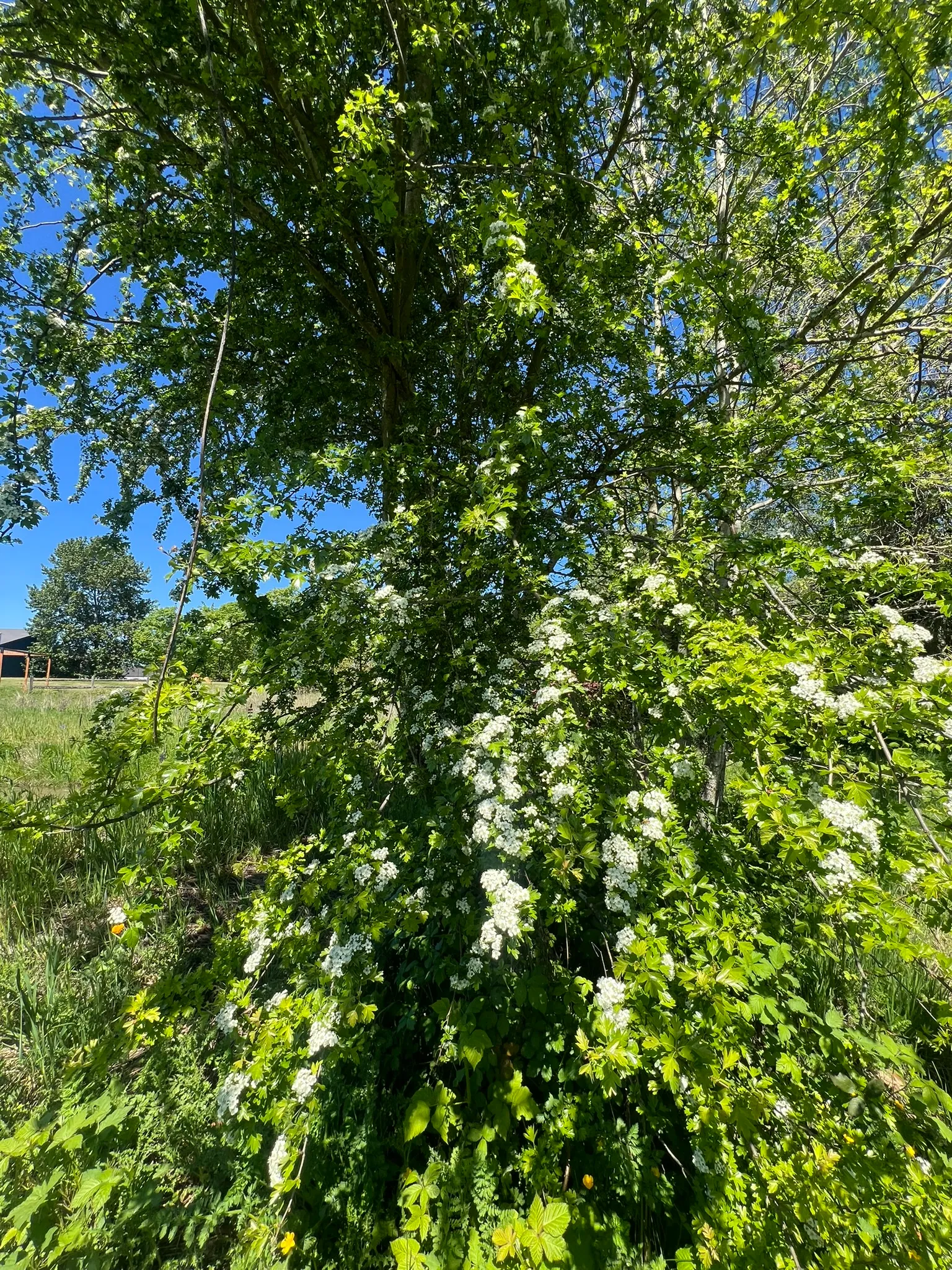 Where its invasive status is not a concern (e.g., well away from natural areas, in urban settings with regular seedling control), common hawthorn provides one of the most impenetrable traditional hedges available — historically the foundation of the British agricultural landscape. Great Plant Picks endorsed for ornamental use. The May floral display is spectacular, the fragrance notable, and the winter haw crop valuable for birds. Suitable for wildlife gardens, traditional hedgerow plantings, and rural settings where its spread can be managed. Not recommended adjacent to natural areas, native plant gardens, or conservation lands in the PNW. Invasive status should be disclosed in any educational or nursery context.How to Identify