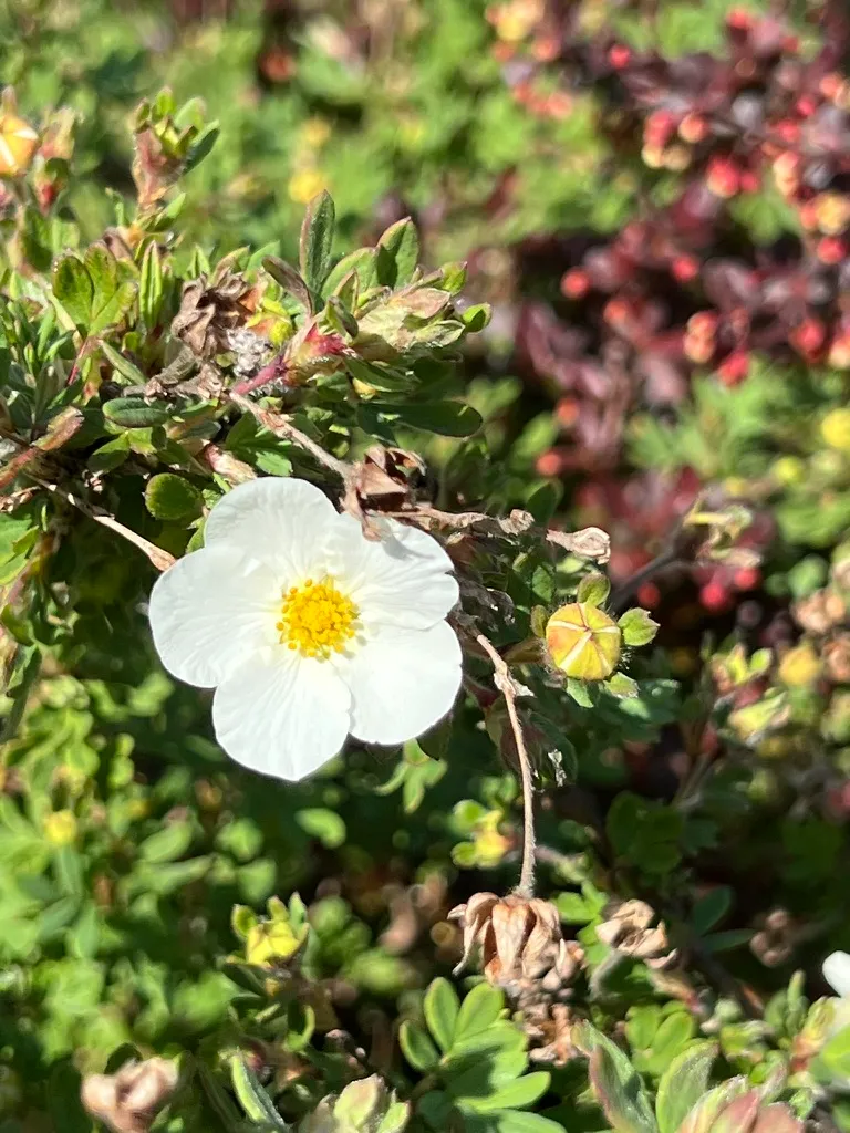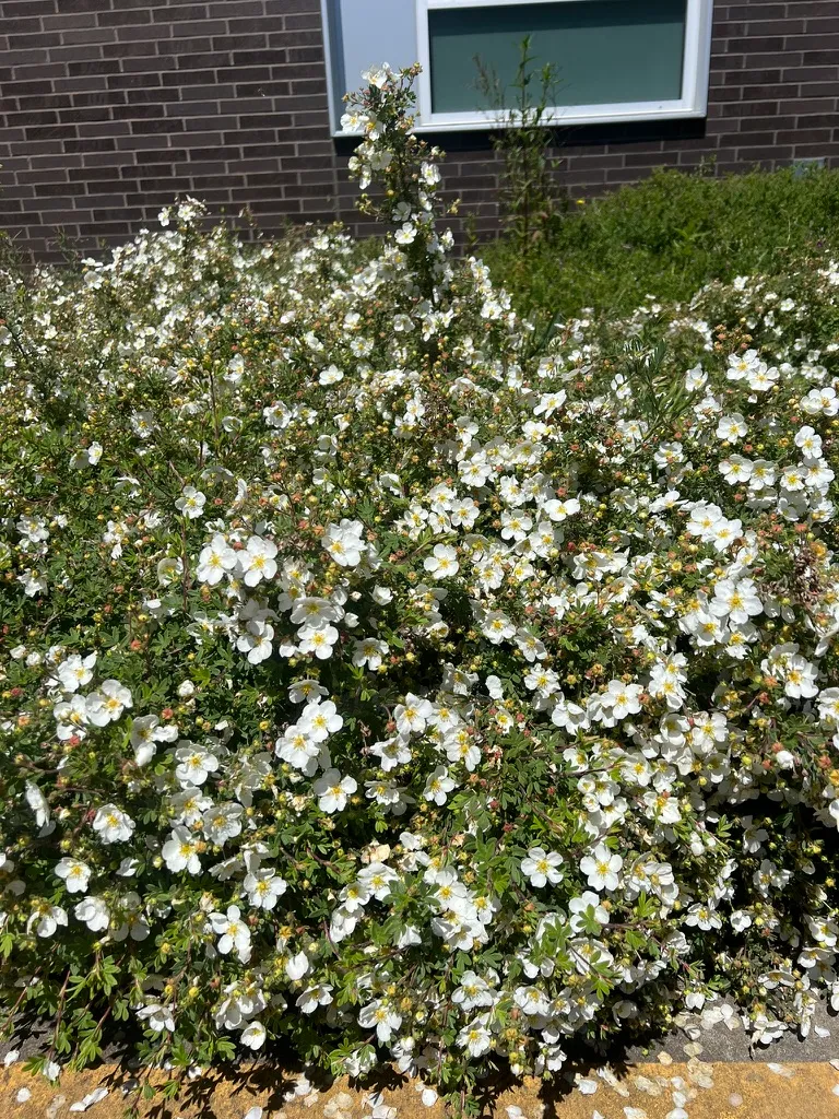 Dasiphora fruticosa (shrubby cinquefoil, potentilla), formerly and still widely sold as Potentilla fruticosa, is a small to medium deciduous shrub native to cool and cold regions across the Northern Hemisphere — one of the most widely distributed woody plants on earth, occurring from arctic tundra and alpine meadows across North America, Europe, and Asia. In gardens it forms a mounded, densely twiggy shrub typically 2–4 feet (60 cm–1.2 m) tall and 3–5 feet (90 cm–1.5 m) wide. The foliage is composed of pinnately compound leaves with 3–7 small, narrow, silky-hairy leaflets 0.3–0.75 inch (8–19 mm) long, giving a fine-textured, somewhat ferny appearance. The extraordinary ornamental quality of this plant is its bloom duration: five-petaled, saucer-shaped flowers 1 inch (2.5 cm) across begin in June and continue, remarkably, through October and often until the first hard frost — a longer continuous bloom period than virtually any other cold-hardy woody shrub. The species flowers are clear yellow with numerous golden stamens, but cultivars extend the palette to white, cream, pale pink, deep pink, and orange, with varying vigor and sun requirements for best color. Extremely cold-hardy to USDA Zone 2. Deer-resistant, drought-tolerant, and pollution-tolerant. The genus name change from Potentilla to Dasiphora is accepted by current taxonomic authorities but the old name Potentilla fruticosa remains in widespread nursery use; both names refer to the same plant.