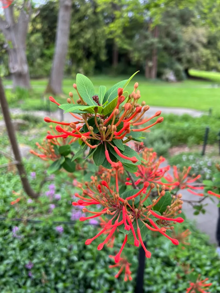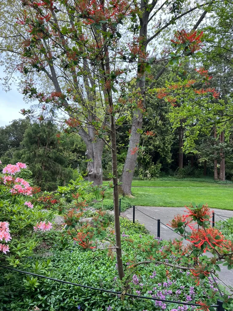 Grown as a landmark specimen tree for the spectacular May through June floral display — Great Plant Picks endorsed. The brilliant scarlet-orange flower display is genuinely without equal among trees hardy in the Pacific Northwest; visitors invariably stop. Best in larger garden positions where the upright multi-stemmed habit (15–30 feet / 4.5–9 m) can develop fully. The PNW maritime climate — mild winters, cool summers, acid soil — is among the best growing conditions outside its native South America. Particularly effective sited against a dark evergreen backdrop (conifers) which amplifies the scarlet-orange color. Combines well with other acid-loving woodland plants: Rhododendron, Pieris, Enkianthus. The Proteaceae family identity adds an engaging botanical story — this is a Southern Hemisphere plant family (Protea, Grevillea, Banksia) here thriving in the Pacific Northwest.How to Identify