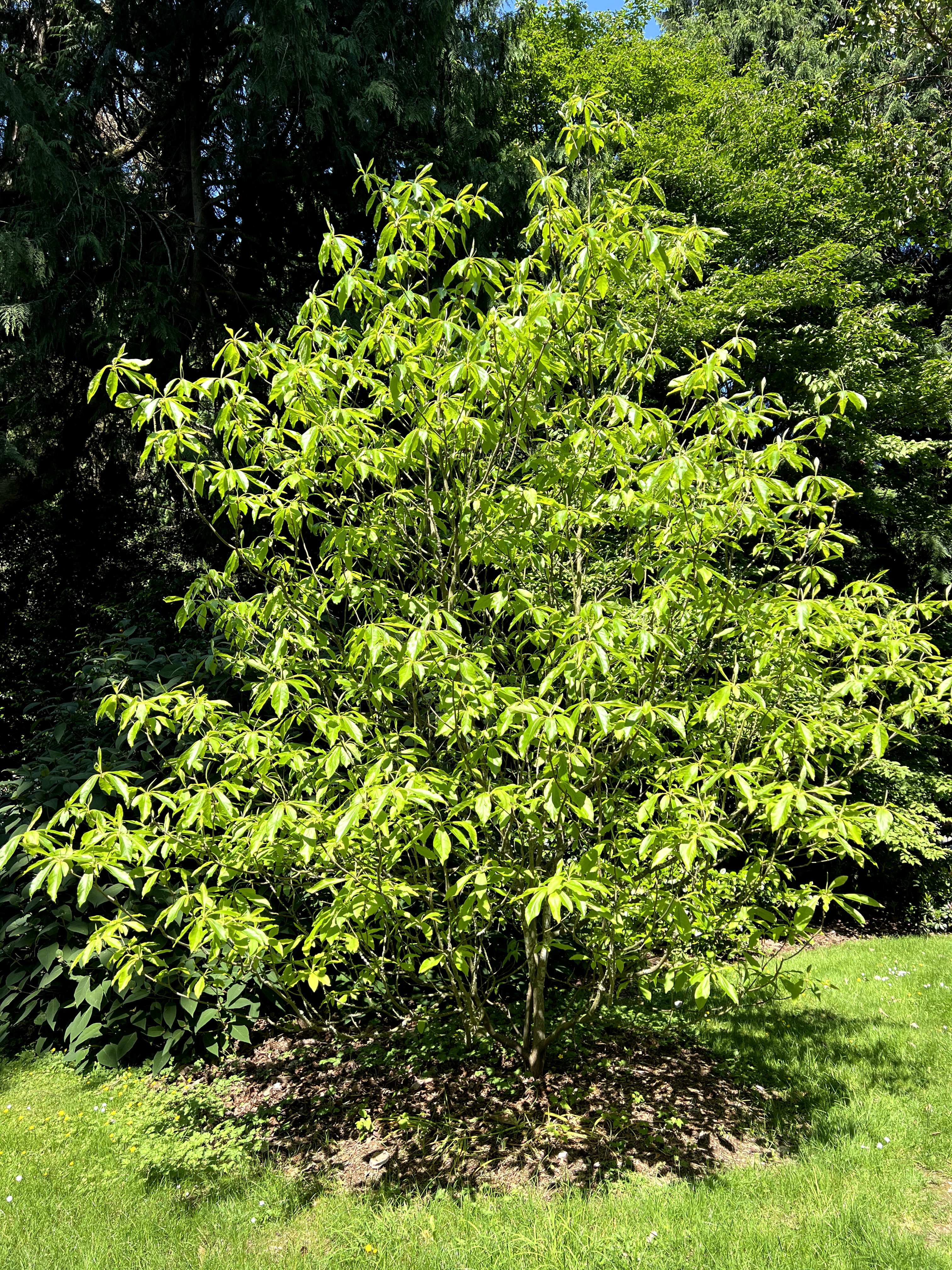 Plant in full sun to partial shade in moist, humus-rich, acidic (pH 4.5–6.5), well-drained soil. Franklinia is particular about soil conditions — it requires good drainage combined with consistent moisture, and will not tolerate waterlogged soils or alkaline conditions. Incorporate generous leaf mold and composted bark at planting. In Pacific Northwest gardens, a sheltered position with protection from drying east winds is advisable. Water regularly through the growing season, especially in the first two to three years of establishment. Avoid disturbing the root zone. In some Pacific Northwest locations, late-season flowers may not open fully before cold arrives — choose a warm, sunny, sheltered microsite to maximize flowering.Pruning