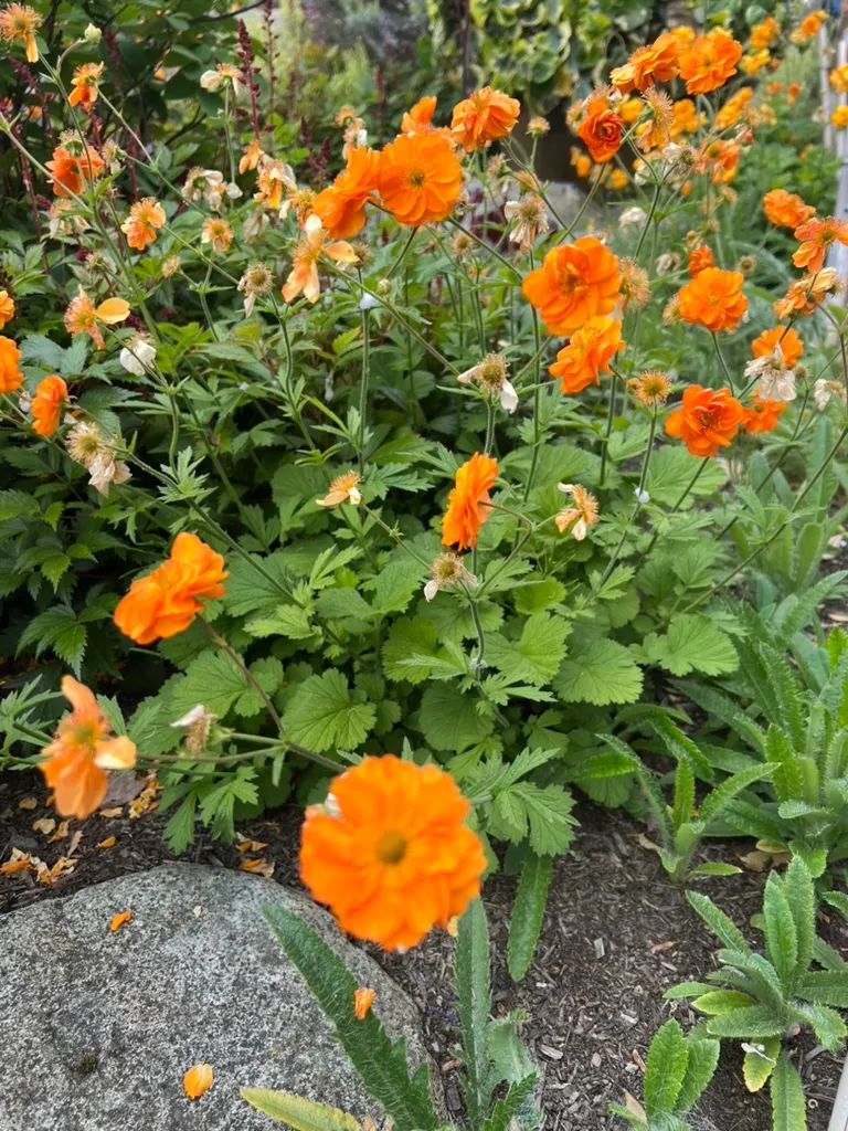 Plant avens in full sun to light partial shade in well-drained, average to moderately fertile soil. Good drainage is important — Geum dislikes waterlogged conditions, especially in winter, which can cause crown rot. In the Pacific Northwest, site in a position with good air circulation and afternoon sun. Water regularly during the growing season but do not allow soil to remain saturated. Deadhead spent blooms consistently to encourage reblooming. Divide clumps every two to three years in spring or autumn as centers become congested and flowering declines. Apply a balanced fertilizer or compost top-dressing in early spring to support the long blooming season.Pruning