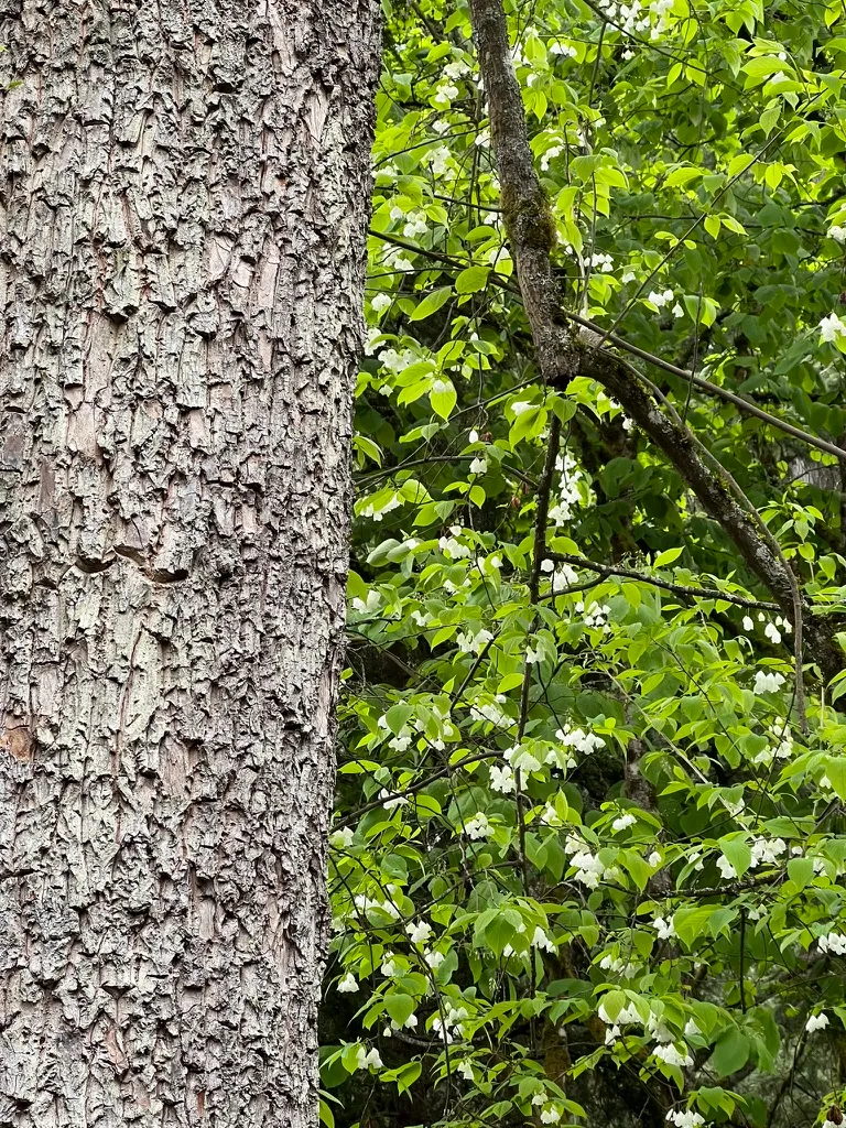 Plant in partial shade to full sun in moist, well-drained, acidic, humus-rich soil with a pH of 4.5–6.5. In Pacific Northwest gardens with naturally acidic soil, Carolina silverbell establishes readily with minimal amendment. Consistent moisture during establishment is critical; mulch generously with composted bark to retain moisture and maintain soil pH. Once established, tolerates brief dry spells but performs best with consistent summer moisture. No serious pest or disease problems in Pacific Northwest conditions. Protect from drying east winds and late spring frosts in colder inland sites.Pruning