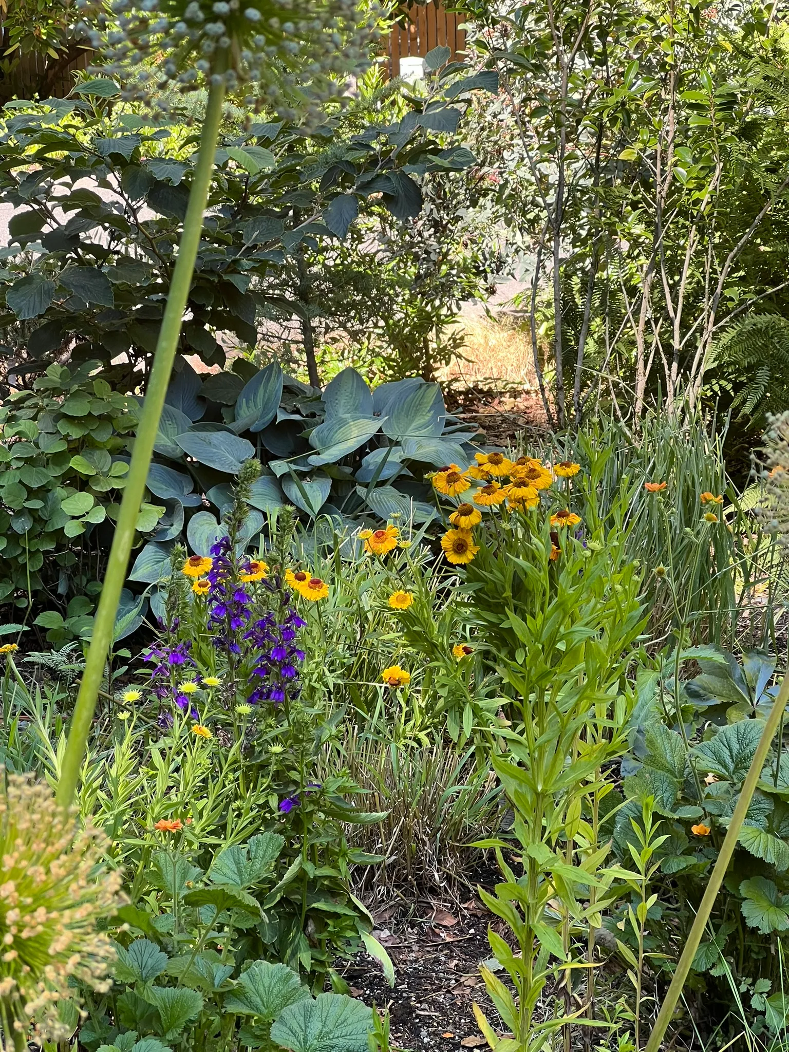 Plant in full sun in average to moist, fertile, well-drained to moist soil with a pH of 6.0–7.0. Most species prefer consistently moist conditions; H. hoopesii tolerates drier soils. Water regularly during establishment and during dry spells; plants in dry soil tend to decline and become susceptible to powdery mildew. Cut back by one-third in late May to early June to reduce height, improve branching, and extend the blooming season. Divide every 2–3 years in early spring — clumps deteriorate at the center relatively quickly. Replant only healthy outer divisions.Pruning