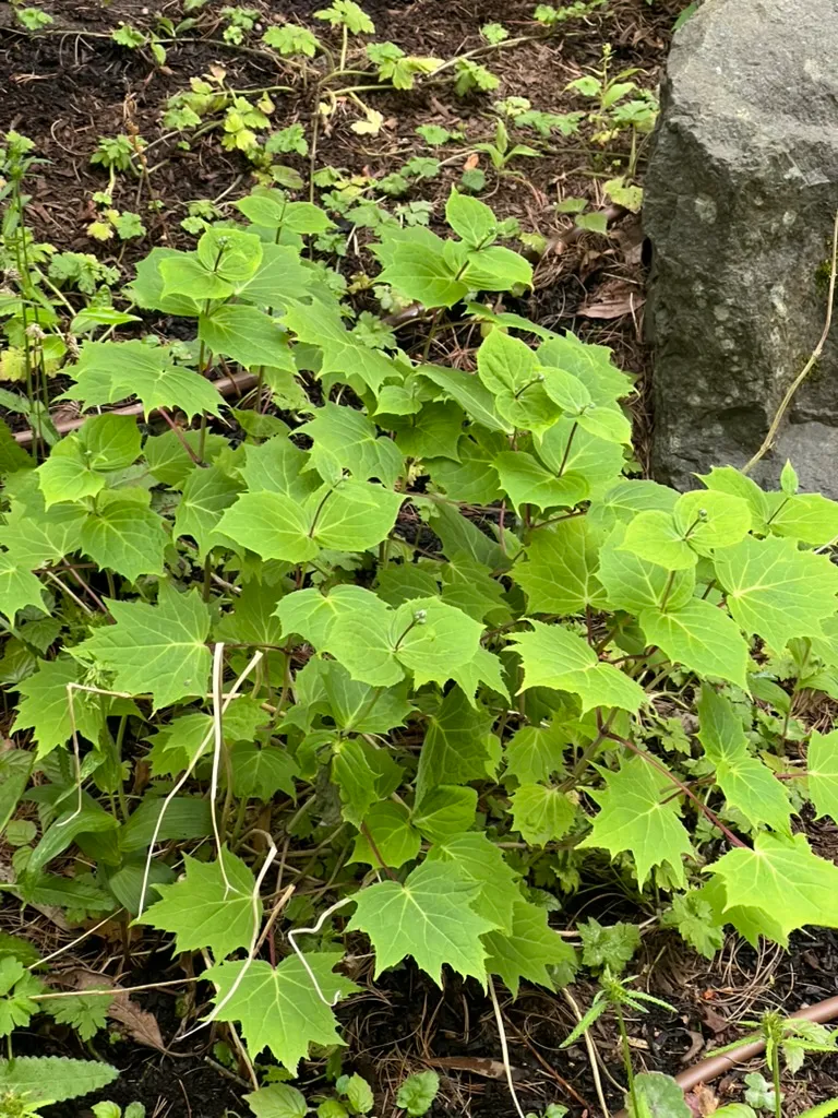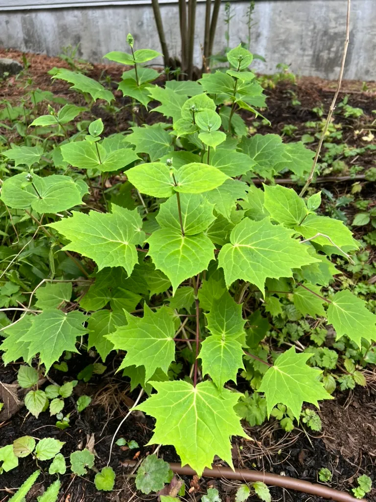 medium to dark green, large palmately lobed on dark purplish-black stemsGrowing Conditions