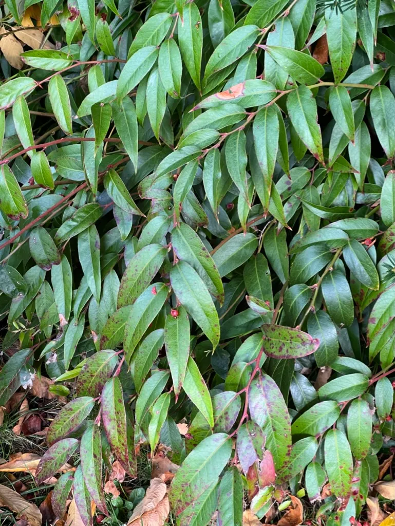 A broadleaf evergreen shrub reaching 2-4 feet (0.6-1.2 m) tall and 3-6 feet (0.9-1.8 m) wide, with a spreading, mounding habit and gracefully arching stems. Growth rate is moderate, adding 6-10 inches (15-25 cm) per year. Leaves are alternate, lance-shaped to elliptical, 2-5 inches (5-13 cm) long and 0.75-1.5 inches (2-4 cm) wide, leathery, and glossy dark green with finely serrated margins. New growth emerges bronze to reddish-bronze in spring, transitioning to dark green by summer. In winter, foliage may develop purple to bronze tones, particularly in sunnier exposures. Stems are arching, green to reddish-brown, creating a fountain-like silhouette. Flowers appear in April to May in axillary racemes 1-3 inches (2.5-8 cm) long along the stems, consisting of small, white, urn-shaped (urceolate) blooms each approximately 0.25 inches (6 mm) long, resembling those of related Ericaceae members such as Pieris. Fruit is a small, dry capsule approximately 0.2 inches (5 mm) across, not ornamentally significant. Spreads slowly by underground suckers, forming colonies over time. Requires acidic soil with pH 4.5-6.0; chlorosis develops in alkaline conditions. Leaf spot (Cercospora) may cause brown lesions on foliage in humid conditions with poor air circulation.