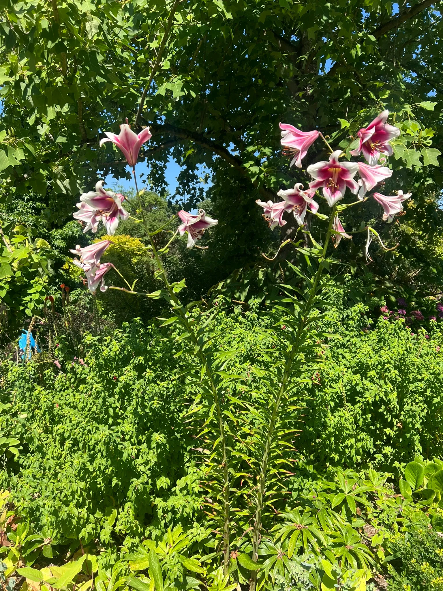 Plant bulbs in fall or early spring 6–8 inches (15–20 cm) deep and 12–18 inches (30–45 cm) apart in full sun to partial shade in well-drained, fertile, slightly acidic soil with a pH of 6.0–6.5. Tall stems (4–7 feet/120–210 cm) require staking in exposed positions. Mulch heavily to keep roots cool. Water consistently during active growth. Apply a balanced fertilizer as shoots emerge in spring and again as buds form. Avoid alkaline soils — plants yellow and decline. Highly toxic to cats — do not grow where cats have access.Pruning