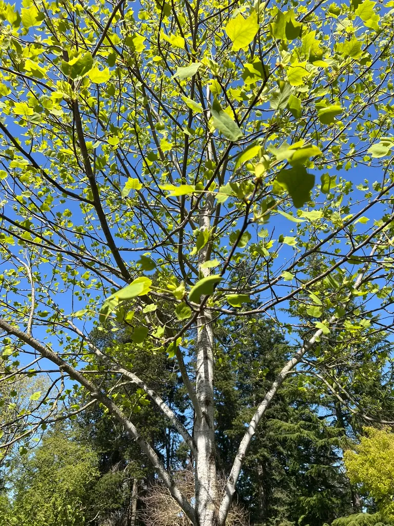 Planted as a specimen, avenue tree, or large-scale shade tree at 30–50 foot (9–15 m) spacing where ample space is available. The distinctive 4-lobed leaf shape, clear butter-yellow fall color, and May–June tulip flowers make it one of the most distinctive and architecturally impressive large deciduous trees for Pacific Northwest parks, campuses, and large residential properties. One of only two species in the genus — closely related to Magnolia.How to Identify