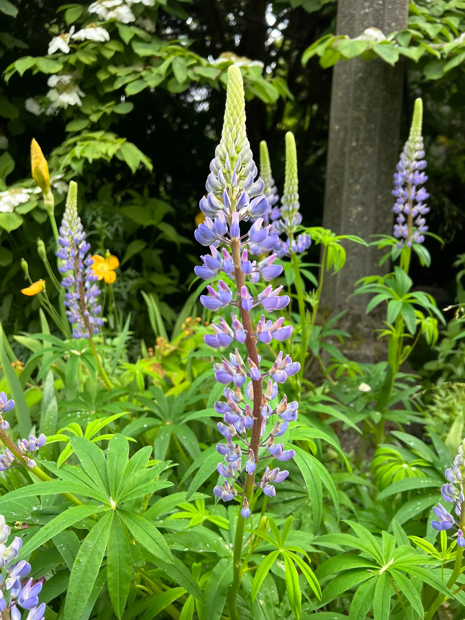 Garden lupine is one of the most dramatic late-spring perennials for Pacific Northwest gardens, with towering flower spikes in blue-violet (species) or every color of the rainbow (Russell Hybrids) making a bold statement at the back of a mixed border or in a cottage-style planting. The species is also a valued native plant for Pacific Northwest wildflower gardens, meadow plantings, and rain gardens, where it fixes nitrogen and supports pollinators. Deadhead consistently to prevent invasive self-seeding. The Russell Hybrid lupines — bred from this species — are among the most spectacular of all cottage garden perennials and perform particularly well in the cool, moist Pacific Northwest climate.How to Identify