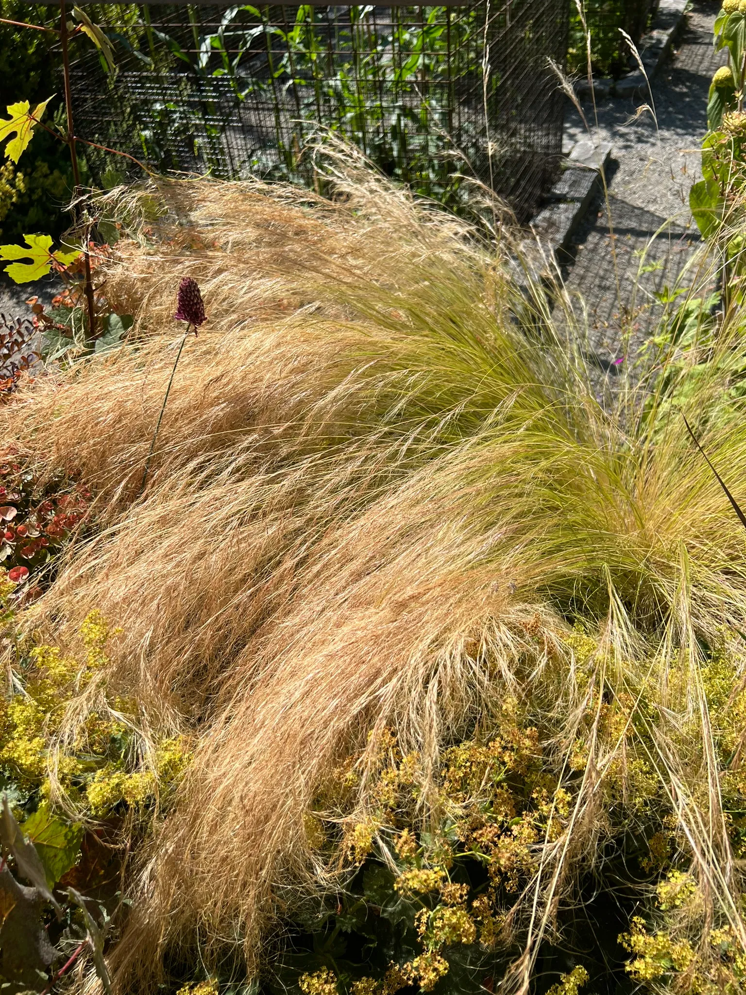 Planted in gravel gardens, dry borders, rock gardens, and containers at 18–24 inch (45–60 cm) spacing. The extraordinary fine texture and constant movement provide contrast to bold-leaved plants. Effective in small, contained plantings where self-seeding can be managed. Not appropriate near natural areas or native grassland habitats. A responsible choice for use in containers, raised beds, or paved settings where seedling control is manageable.How to Identify