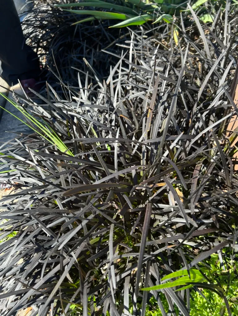 A low-growing, clump-forming evergreen perennial reaching 6-10 inches (15-25 cm) tall and 8-12 inches (20-30 cm) wide. Growth rate is slow, with individual clumps expanding 1-2 inches (2.5-5 cm) per year by short stolons. This cultivar is distinguished from the green-leaved species by its near-black foliage, one of the darkest naturally occurring leaf colors in the plant kingdom. Leaves are strap-shaped, arching, 0.15-0.25 inches (4-6 mm) wide and 6-10 inches (15-25 cm) long, emerging dark green to purple-black and darkening to near-black with age and sun exposure. Foliage is evergreen, though older leaves may become tattered after severe winters in zones 5-6. Flowers appear in July to August on short racemes nestled among or just below the foliage level, small, bell-shaped, pale lavender to pinkish-white, each approximately 0.2 inches (5 mm) across. Flowers are inconspicuous due to the dark foliage background. Fruit is a glossy, jet-black, globose berry approximately 0.25 inches (6 mm) in diameter, ripening in fall and persisting through winter. Roots are thick, fleshy, and somewhat tuberous, similar to those of Liriope. Distinguished from Liriope by the narrower leaves, shorter stature, and black (vs. purple) berry color. Hardy to approximately -10°F (-23°C). Slugs and snails may damage foliage in wet conditions.