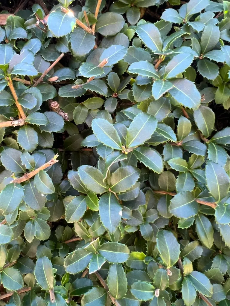 A dense, rounded to mounding broadleaf evergreen shrub reaching 4-8 feet (1.2-2.4 m) tall and 6-10 feet (1.8-3 m) wide. Growth rate is slow to moderate, adding 4-8 inches (10-20 cm) per year. Branches are arching, giving the plant a graceful, slightly weeping silhouette at maturity that is wider than tall. Leaves are opposite, small, elliptical to ovate, 0.5-1 inch (1.3-2.5 cm) long and 0.3-0.5 inches (8-13 mm) wide, glossy dark green, thick and leathery, with finely toothed (serrulate) margins. The small leaf size creates a fine, dense texture similar to boxwood. Flowers appear in March to April in axillary clusters of 4-8, each flower tubular, four-lobed, white, approximately 0.5 inches (13 mm) across, with an intensely sweet, jasmine-like fragrance that is detectable from 15-20 feet (4.5-6 m). Flowers are produced profusely, covering the plant in white along the stems. Fruit is an ovoid drupe approximately 0.4 inches (10 mm) long, blue-black, ripening in late summer, produced sparsely. Named for French missionary and botanist Jean Marie Delavay, who collected it in Yunnan, China, in the 1890s. One of the most fragrant spring-flowering shrubs available for Pacific Northwest gardens. Hardy to approximately 0-5°F (-18 to -15°C). Received the Royal Horticultural Society Award of Garden Merit.