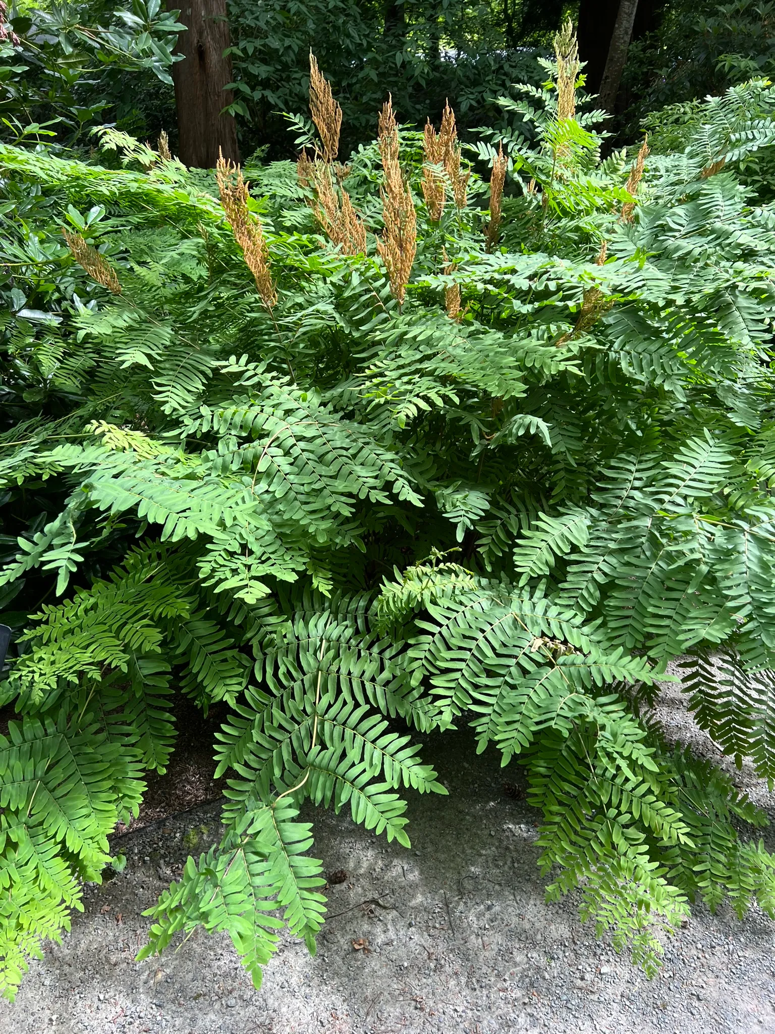 Osmunda regalis does not flower. Fertile fronds bearing sporangia appear from late spring through summer, typically May to August in zones 3-7. The rusty-brown fertile pinnule clusters are visible for 6-10 weeks before spore dispersal is complete. Spring frond emergence, with its pinkish-bronze coloring, is the primary ornamental display period.Detailed Descriptions