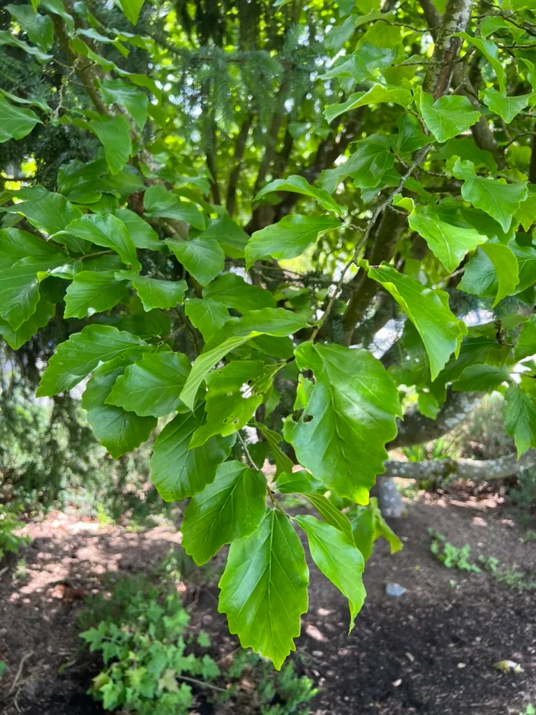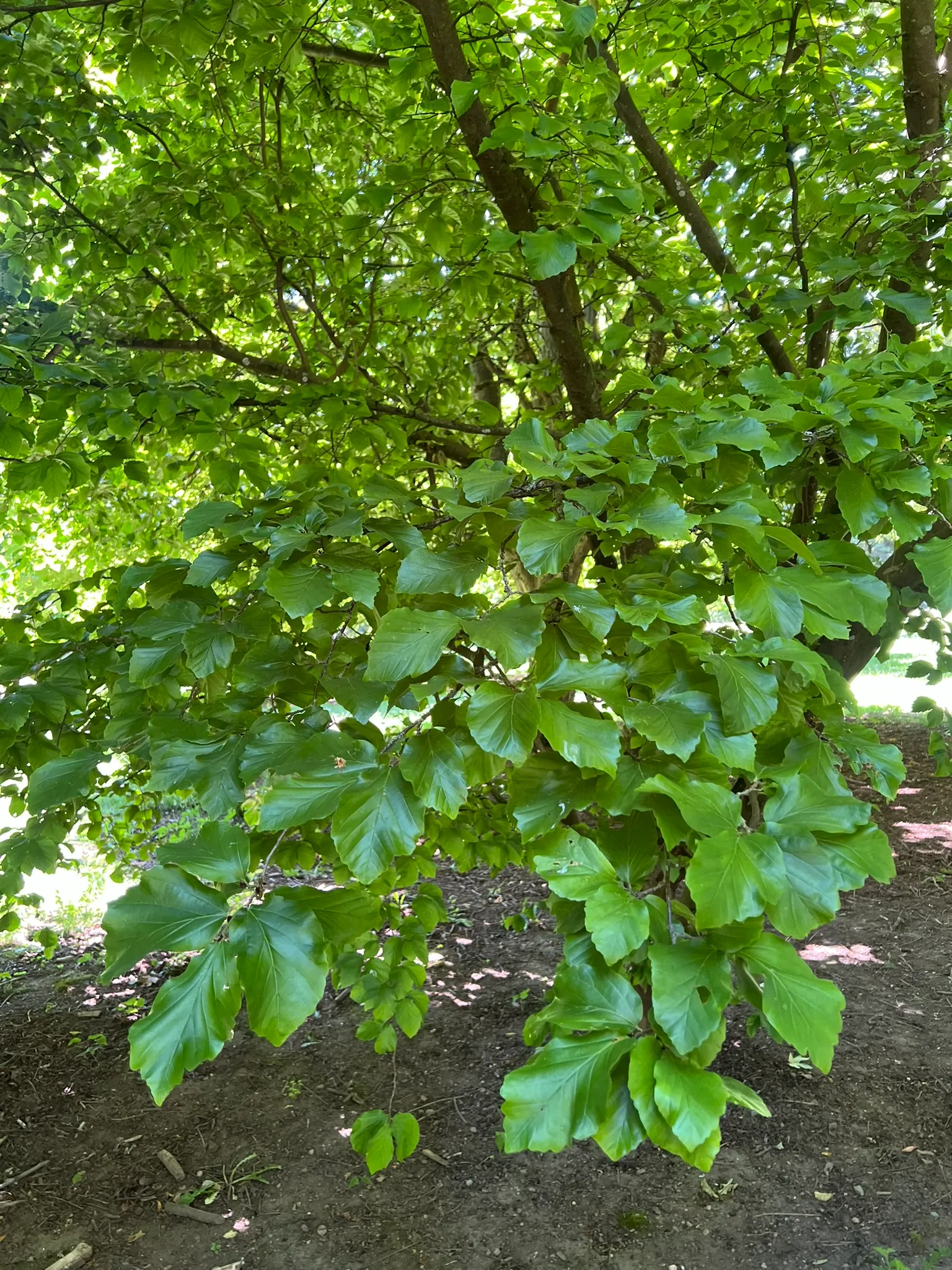 A deciduous large shrub or small to medium tree reaching 20–40 feet (6–12 m) tall and 15–30 feet (4.5–9 m) wide, native to northern Iran and one of the finest four-season ornamental trees for Pacific Northwest gardens. Leaves oval with wavy margins, 2–4 inches (5–10 cm) long, emerging with reddish-purple tints, maturing to glossy dark green, then turning spectacular combinations of yellow, orange, red, and burgundy in fall simultaneously. Late-winter (January–March) flowers are clusters of tiny red stamens on bare branches. Mature specimens develop exfoliating bark in mosaic patches of gray, cream, green, and cinnamon. Extremely adaptable and low-maintenance. Hardy in USDA zones 4–8.