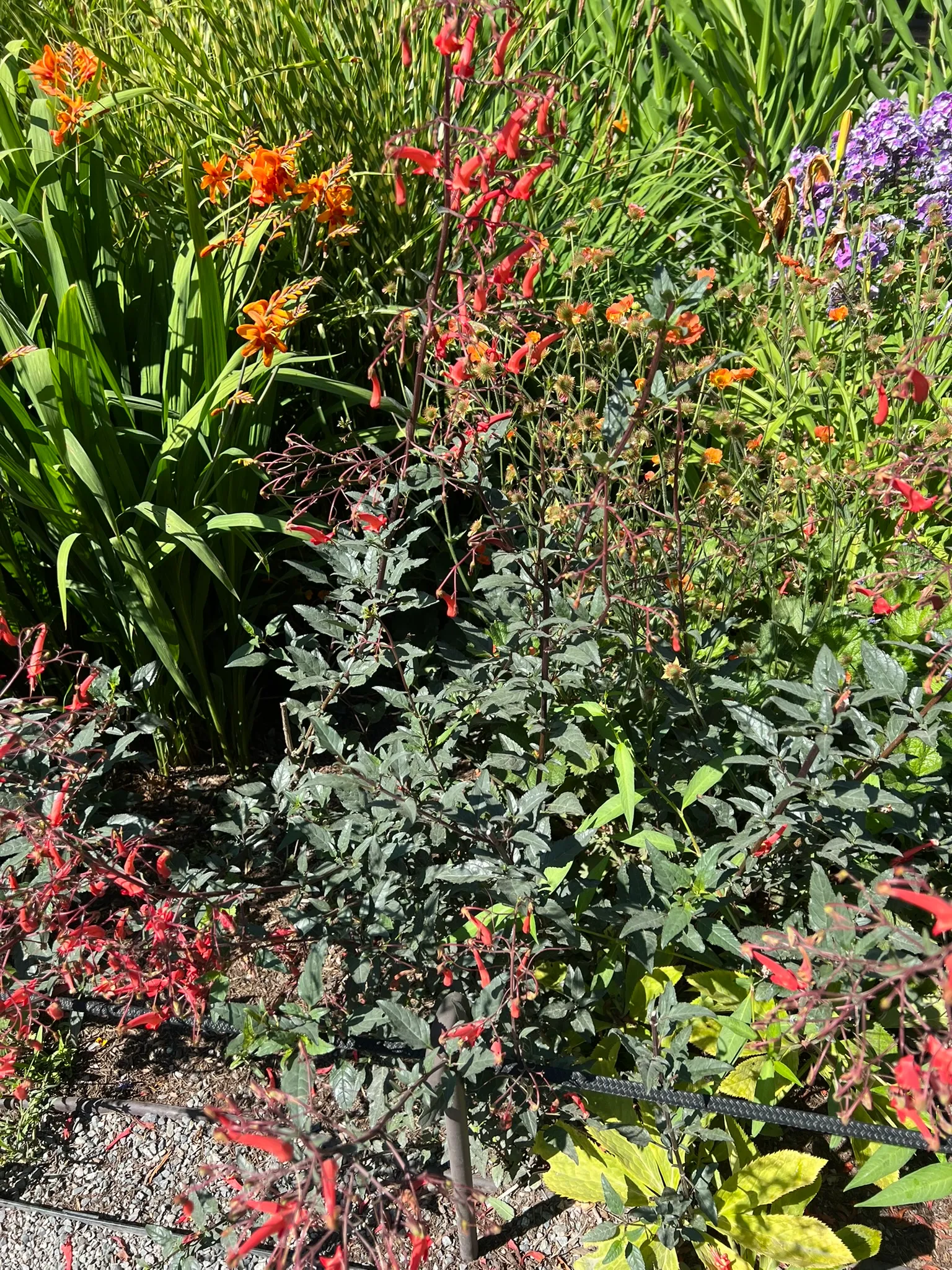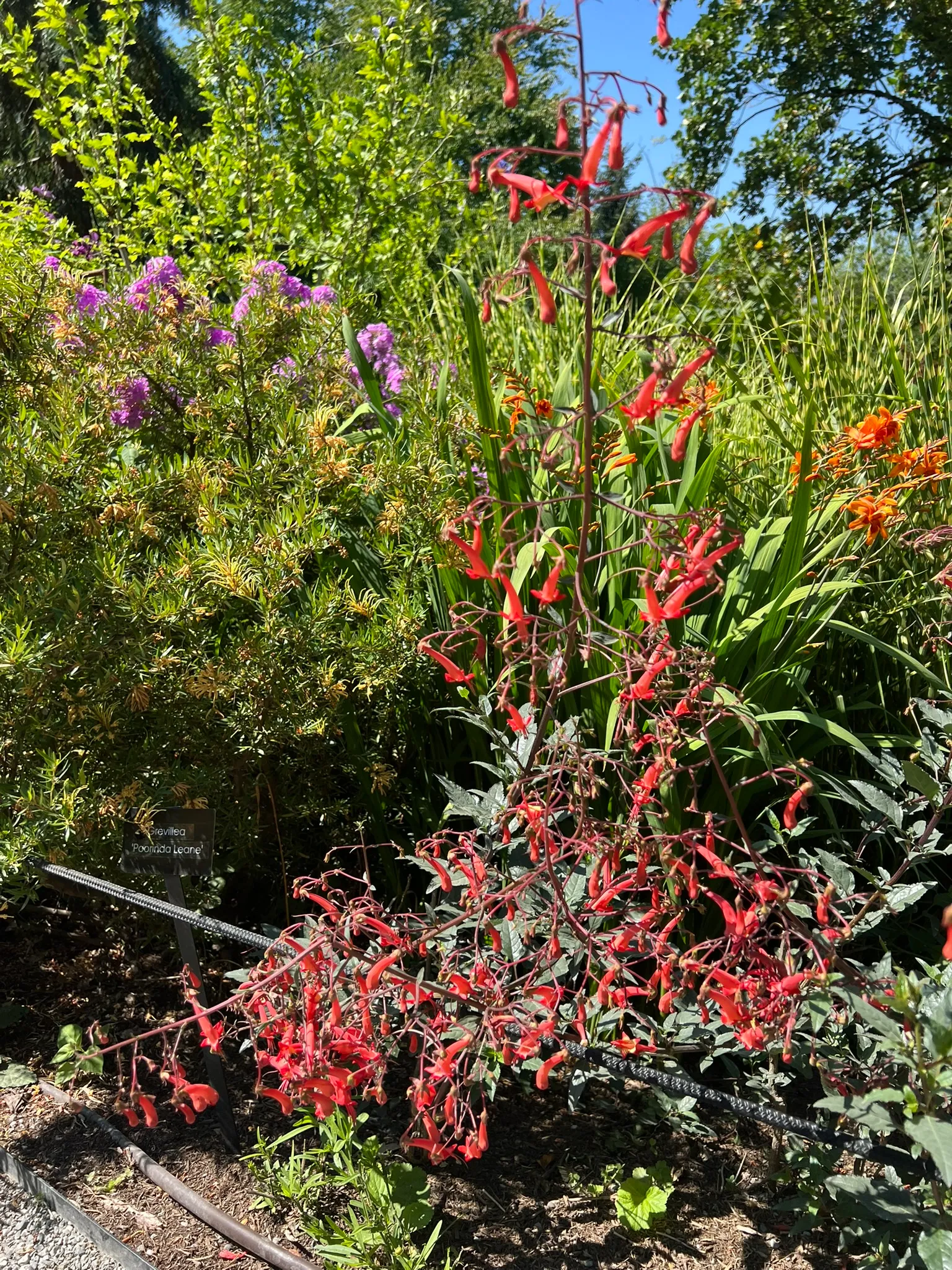 Planted in mixed perennial borders, against warm sheltered walls, and in courtyard gardens at 30–36 inch (75–90 cm) spacing. The pendant tubular flowers in warm tones combine well with blue and purple late-summer perennials (agastache, salvia, veronicastrum). Effective as a late-season specimen alongside ornamental grasses. In containers (minimum 10-gallon / 38L), makes an outstanding patio plant overwintered under cover in zones below 7.How to Identify
