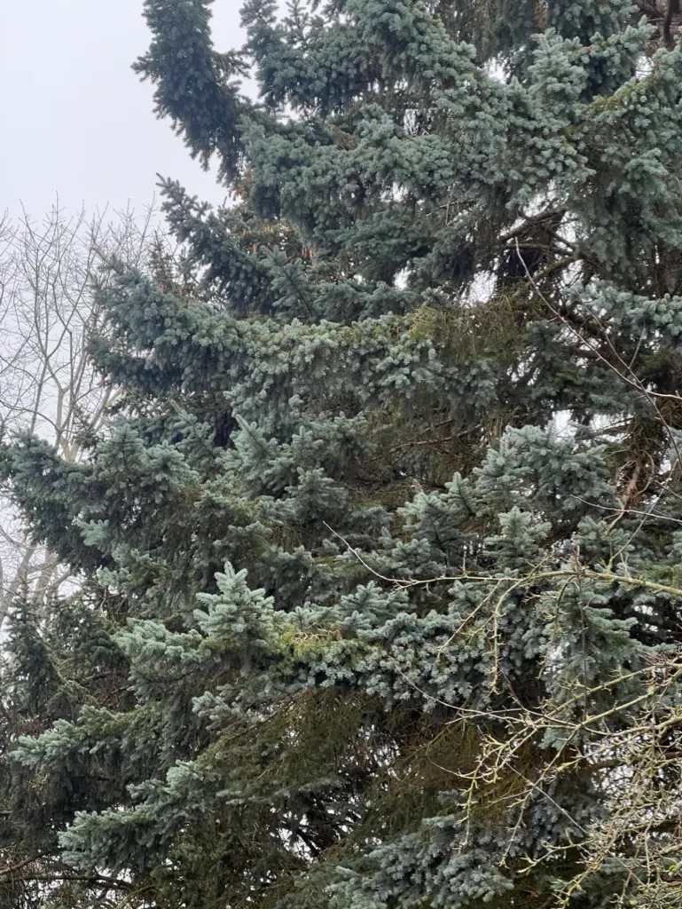 Picea pungens 'Glauca' is a group designation for selected forms of Colorado spruce with consistently blue-gray to silvery-blue foliage, more intensely glaucous than average seedlings of the species. Trees reach 30–50 feet (9–15 m) tall and 10–15 feet (3–4.6 m) wide; growth rate is 8–12 inches (20–30 cm) per year. The pyramidal crown is dense with stiffly horizontal branches. Needles are 0.75–1.25 inches (19–32 mm) long, rigid, sharply pointed, four-sided, and silvery blue-gray; the glaucous color is caused by a waxy coating on the needle surface. Bark is gray-brown, scaly, becoming furrowed on older trunks. Cones are 2.5–4 inches (6–10 cm) long, cylindrical, light brown. 'Glauca' represents a seed-selection group rather than a clonally propagated cultivar, so foliage color and form vary among individual plants. Rhizosphaera needle cast is a persistent problem in humid climates, progressively defoliating the lower crown.