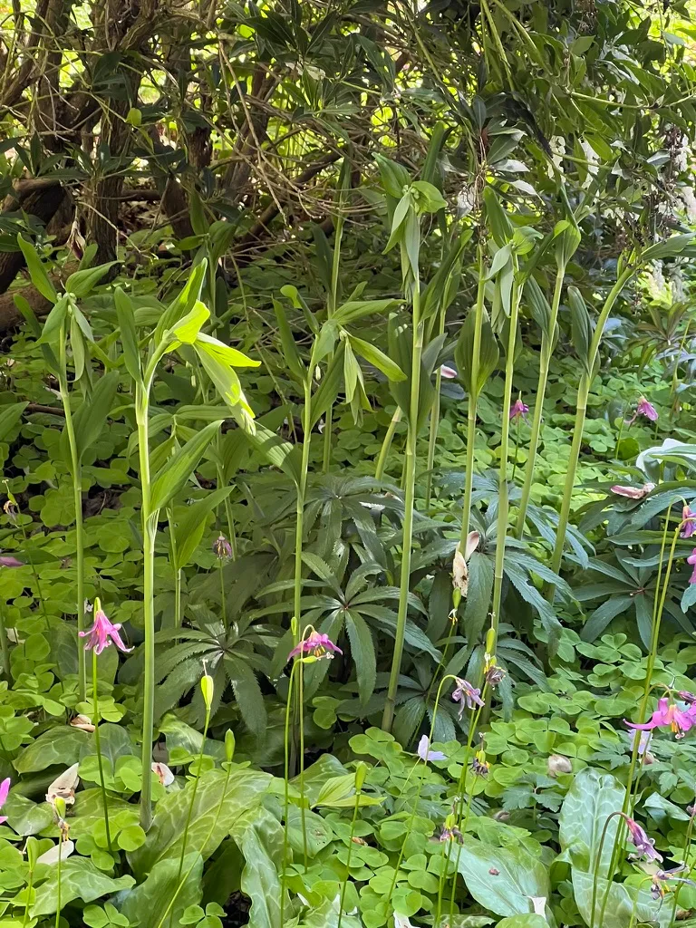 Polygonatum species range across the temperate Northern Hemisphere. P. biflorum (great Solomon's seal) is native to eastern and central North America, from Quebec south to Florida and Texas, growing in moist, shaded woodlands and forest margins. P. odoratum (fragrant Solomon's seal) is native to Europe and Asia. Most commonly cultivated species prefer shaded, humus-rich woodland conditions.Suggested Uses