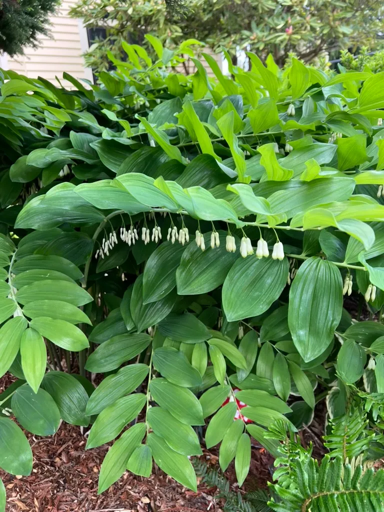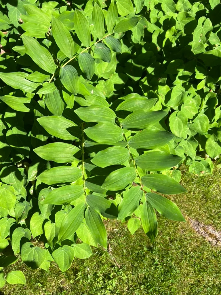 Used as a groundcover and shade garden perennial at 18–24 inch (45–60 cm) spacing. The arching stems create elegant horizontal layers in shaded beds. Combines well with hostas, ferns, astilbe, and trillium in woodland gardens. The variegated cultivar P. odoratum Variegatum (cream-edged leaves) is widely grown as a foliage accent. Berries attract birds in fall.How to Identify