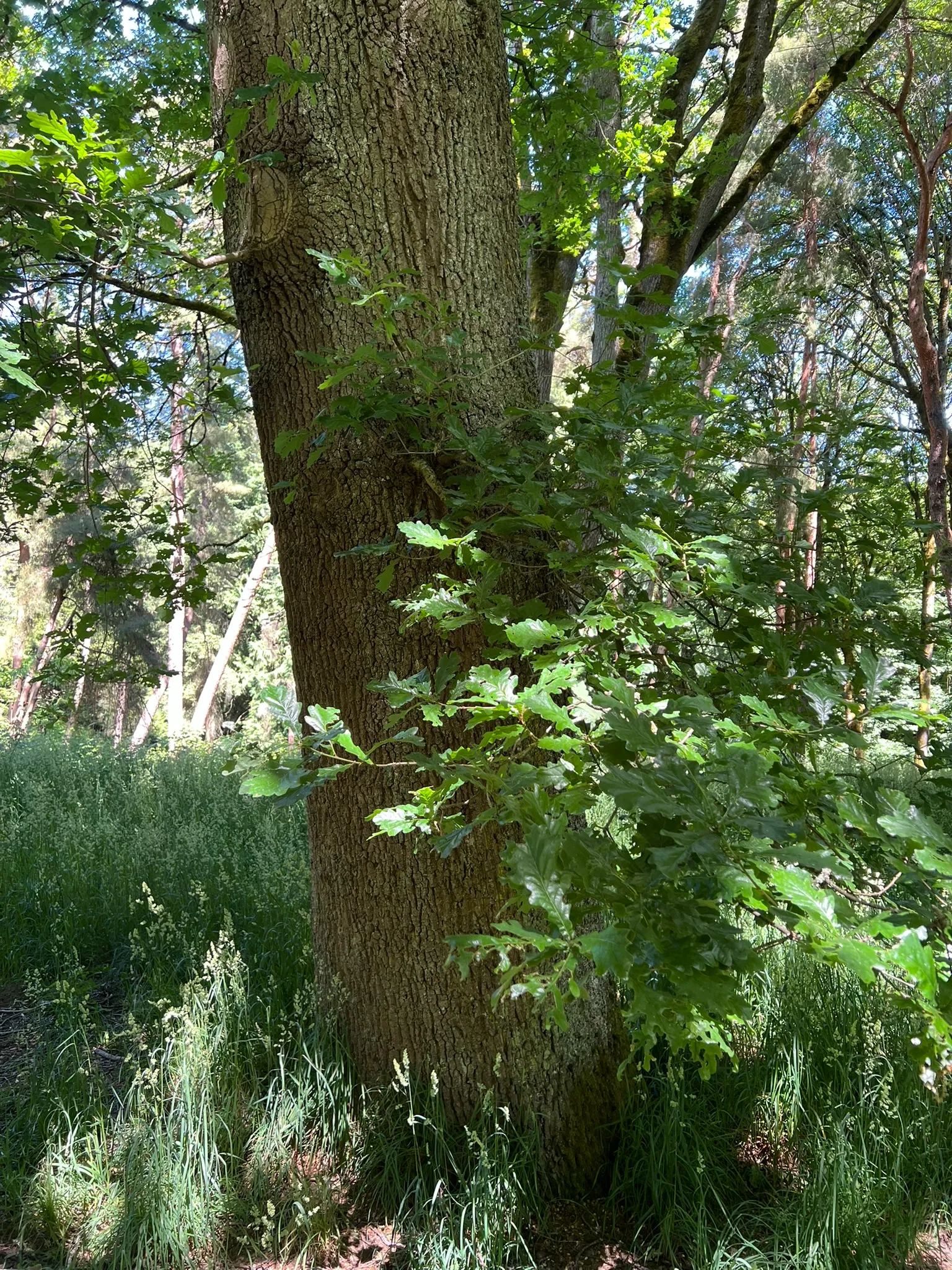 Water deeply once every 1-2 weeks during the first 2-3 growing seasons to establish the deep root system. Established trees are drought tolerant but maintain better foliage in prolonged dry periods with occasional deep irrigation. Do not grade, pave, or compact soil within the drip line, as root damage leads to decline that may not manifest for several years. Oak powdery mildew (Erysiphe alphitoides) is common on young foliage and regrowth but is cosmetic and does not affect tree health. Sudden oak death (Phytophthora ramorum) is present in the Pacific Northwest; Quercus robur shows moderate susceptibility. Avoid wounding the trunk during the growing season to reduce risk of oak wilt in regions where it occurs.Pruning