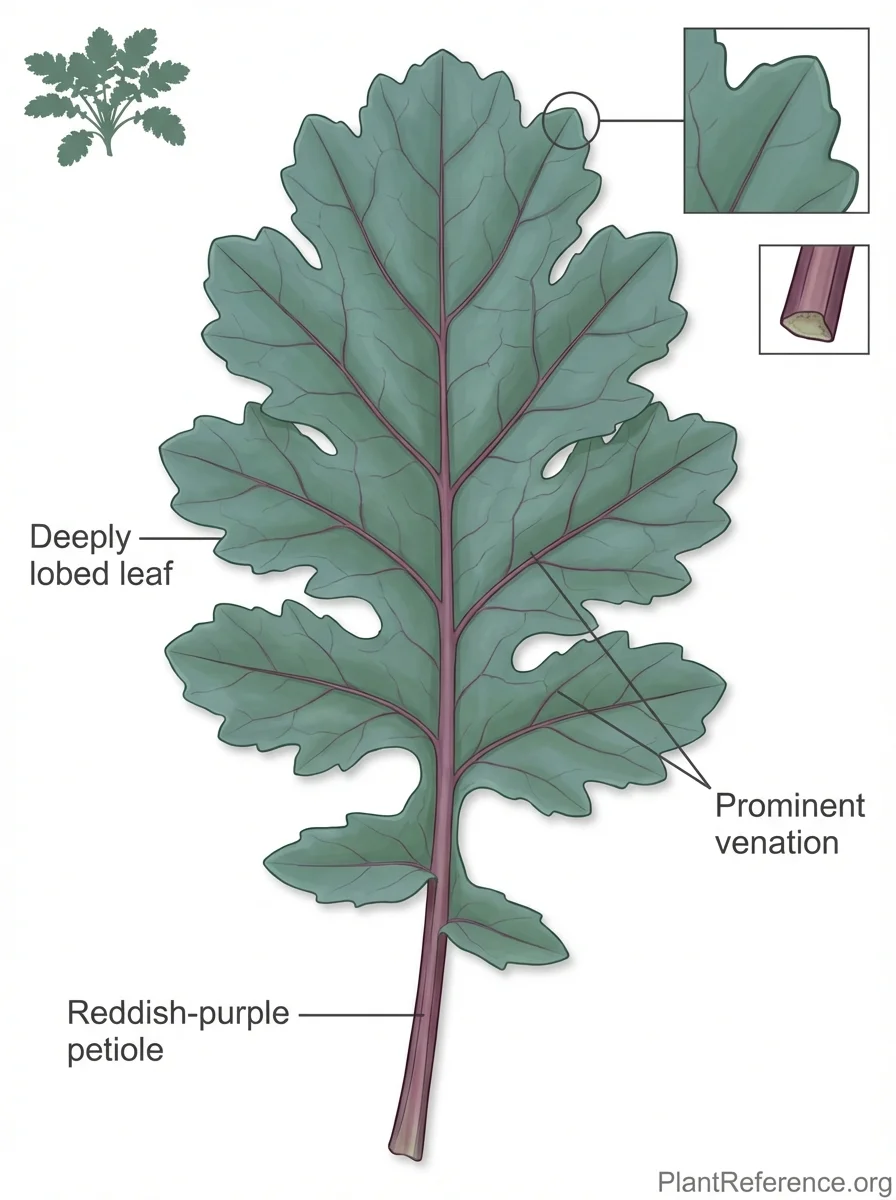 Blue-green to gray-green with prominent reddish-purple to burgundy stems and veining that intensifies in cool weatherGrowing Conditions