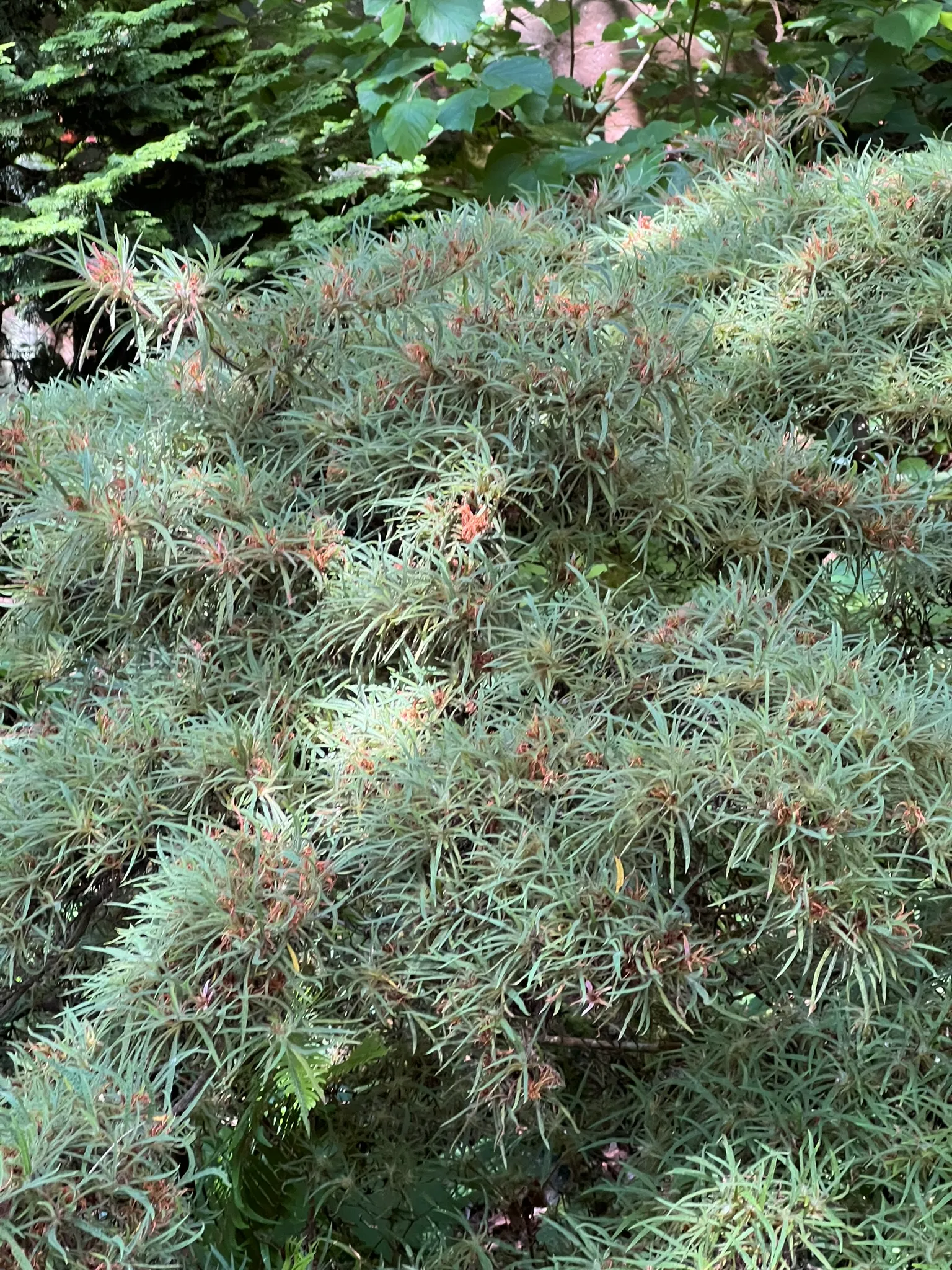 Planted as a specimen in woodland gardens, Japanese-inspired gardens, and collector borders where the thread-like foliage and spidery flowers can be viewed up close, spaced 3–4 feet (0.9–1.2 m) from adjacent plants. The narrow foliage provides texture contrast throughout the growing season; spring flowers add further interest. Suitable for container culture in partly shaded positions. Best suited to partly shaded, moist, acidic west-side Pacific Northwest conditions.How to Identify