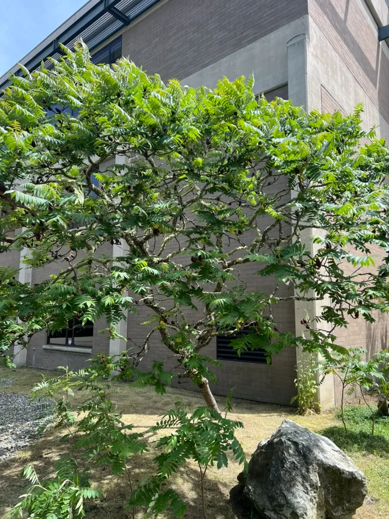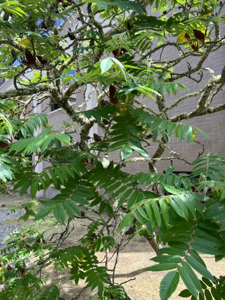 Prune in late winter (January through February). Management consists primarily of removing unwanted suckers at the colony perimeter. Cut entire colony to the ground in late winter every 3-5 years to rejuvenate and control height; vigorous regrowth occurs from the root system. Coppiced plants produce larger, more tropical-looking compound leaves. Remove dead stems at any time.Pruning Schedule